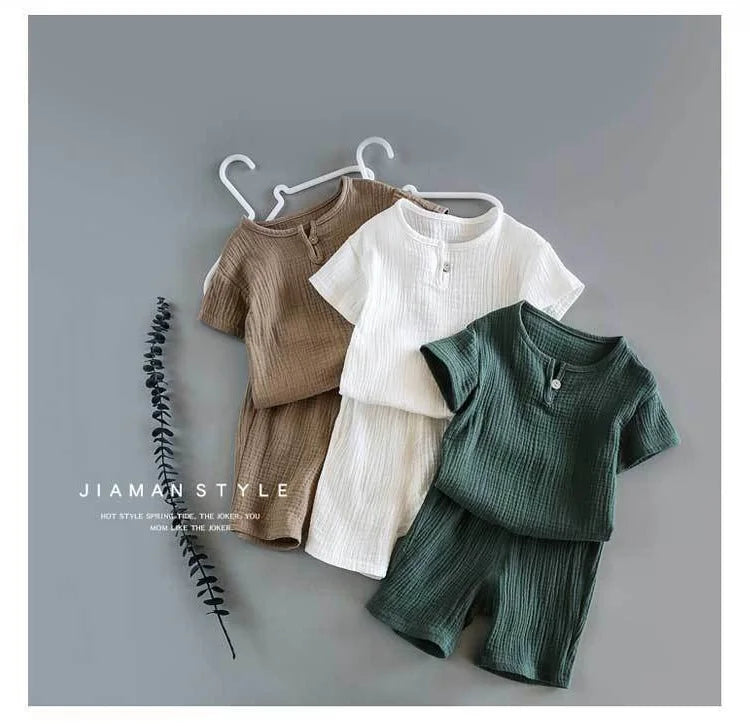 12M-8 Yrs 2 Pcs Boys Girls Clothing Sets 2021 Summer Baby Girls Clothes Cotton And Linen Retro Kids Children Clothes Suits