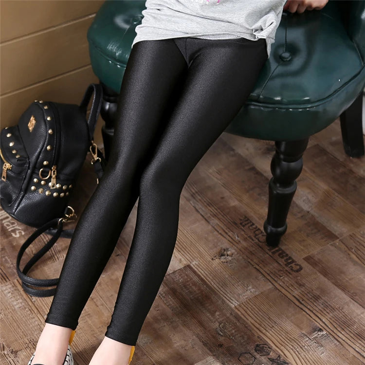 2-14 Years Girls Skinny Long Pants Shiny Black White Pink Children Bottoms Leggings Kids Elastic Trousers All-matches Leggings