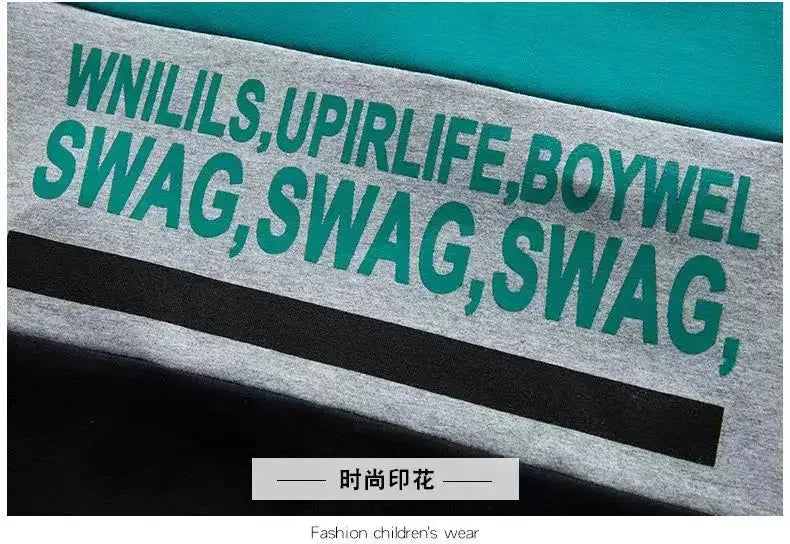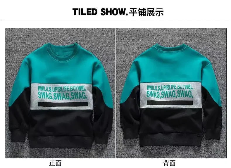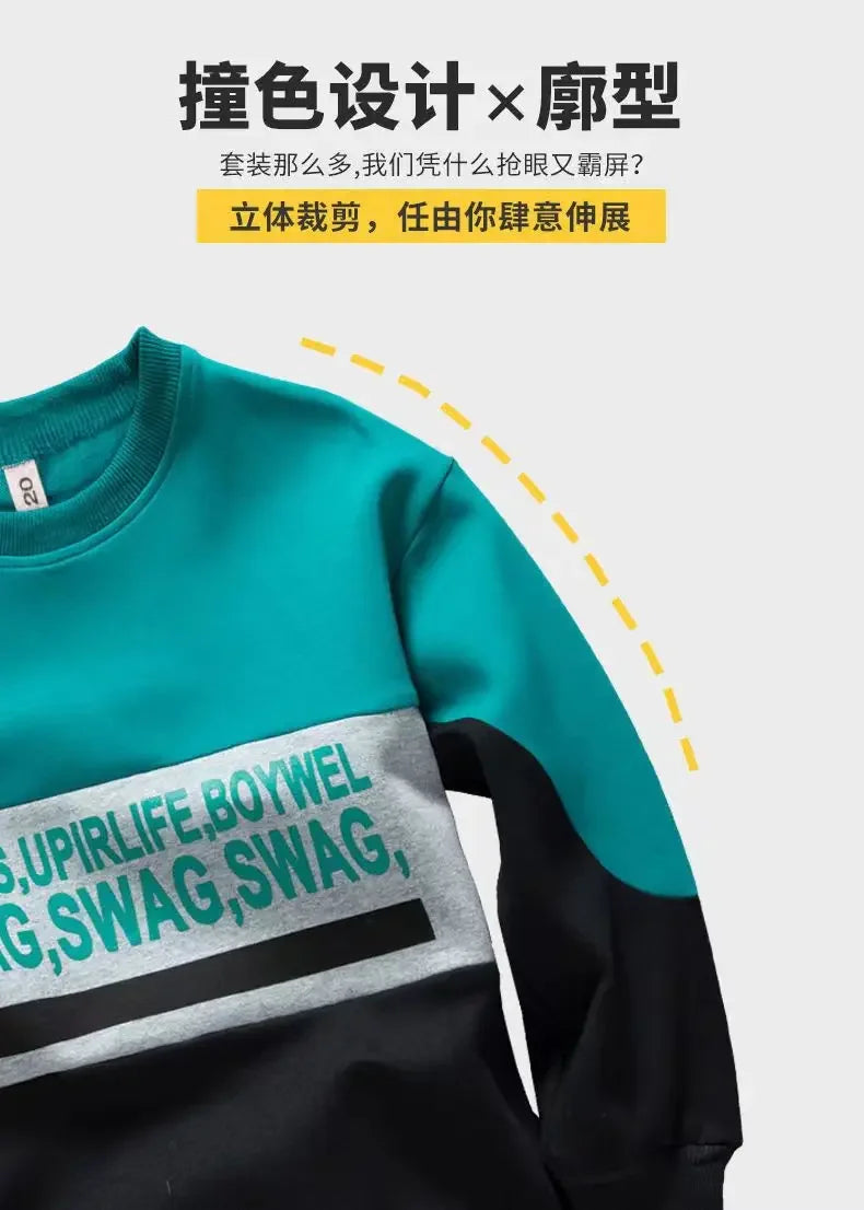 2024 autumn winter Boys Tracksuit velvet Children patchwork letters Cotton T-Shirt + Pants Suit Clothes children Set 12 14 Y