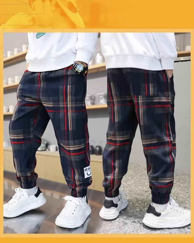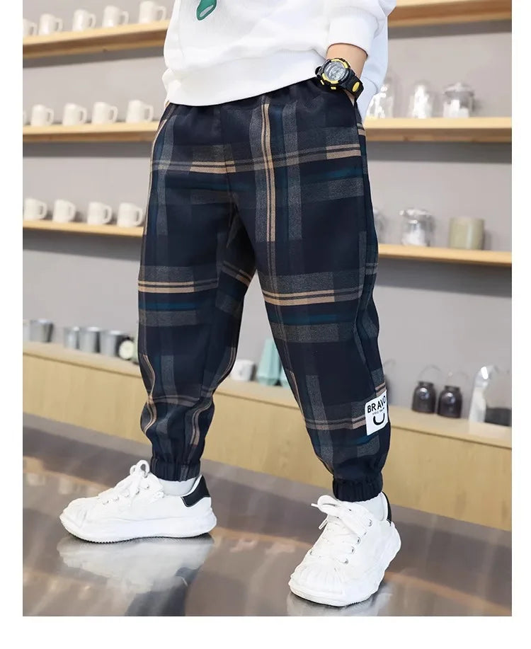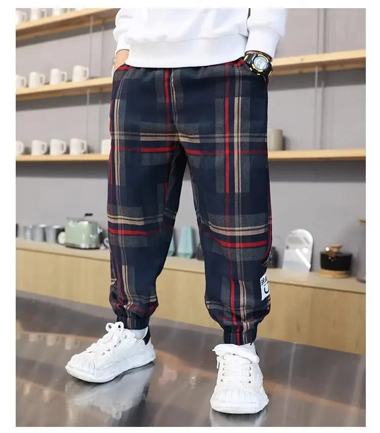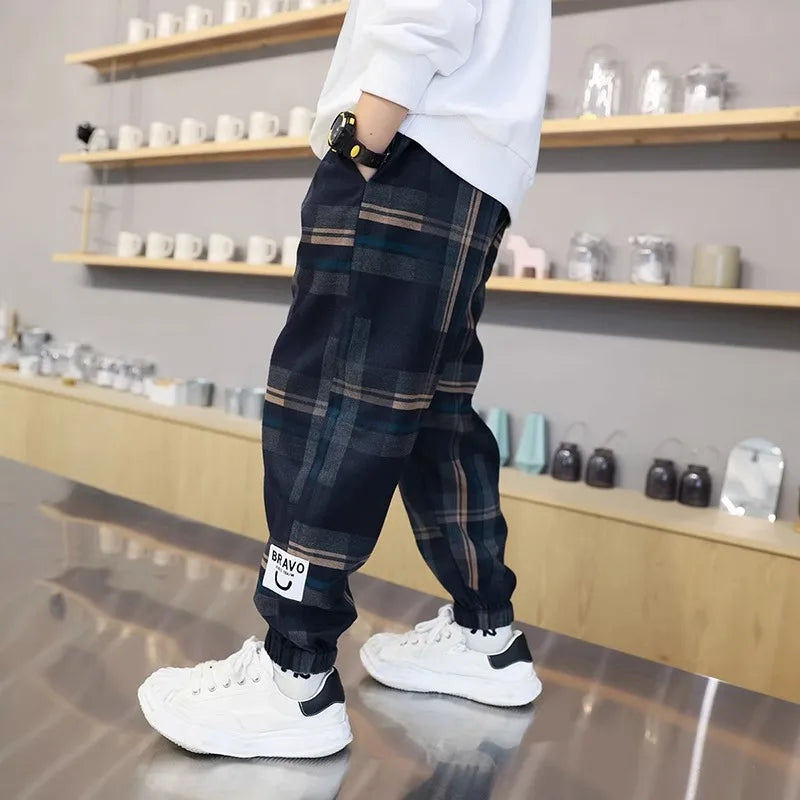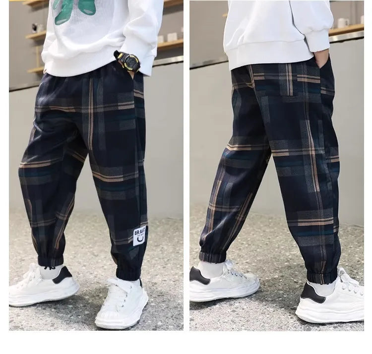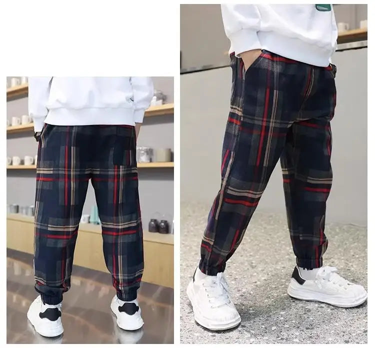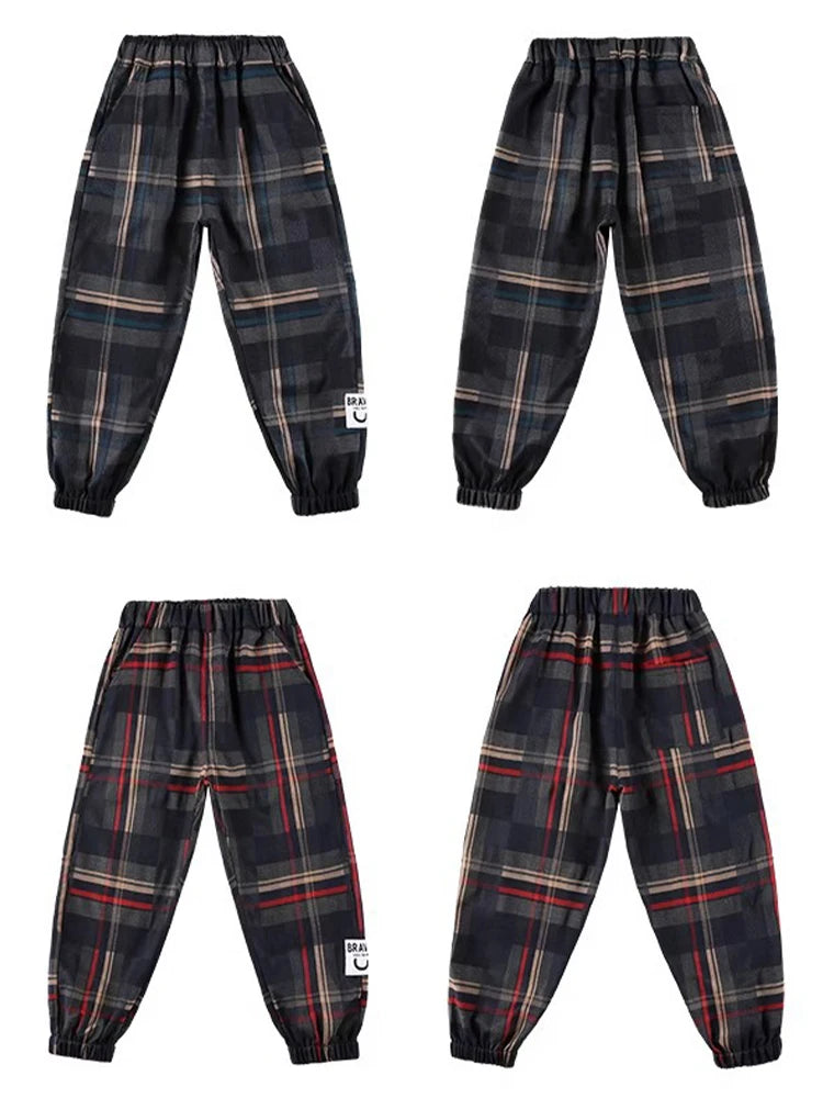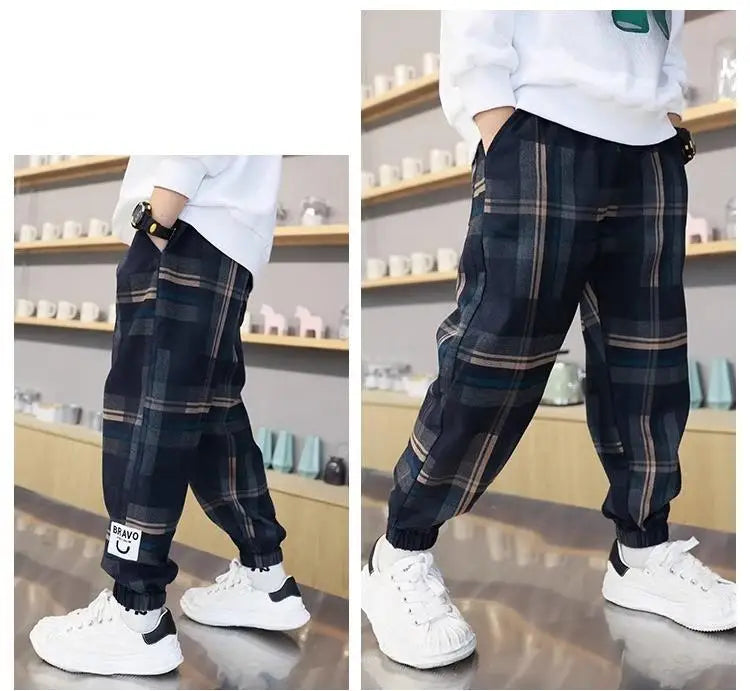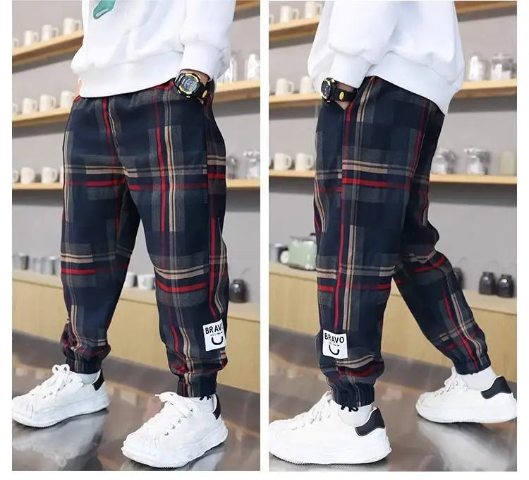 2024 Fashion Boys Cotton Plaid Pants Spring Autumn Toddler Casual Kids Loose Trousers Sweatpants for Teenage Children Clothes
