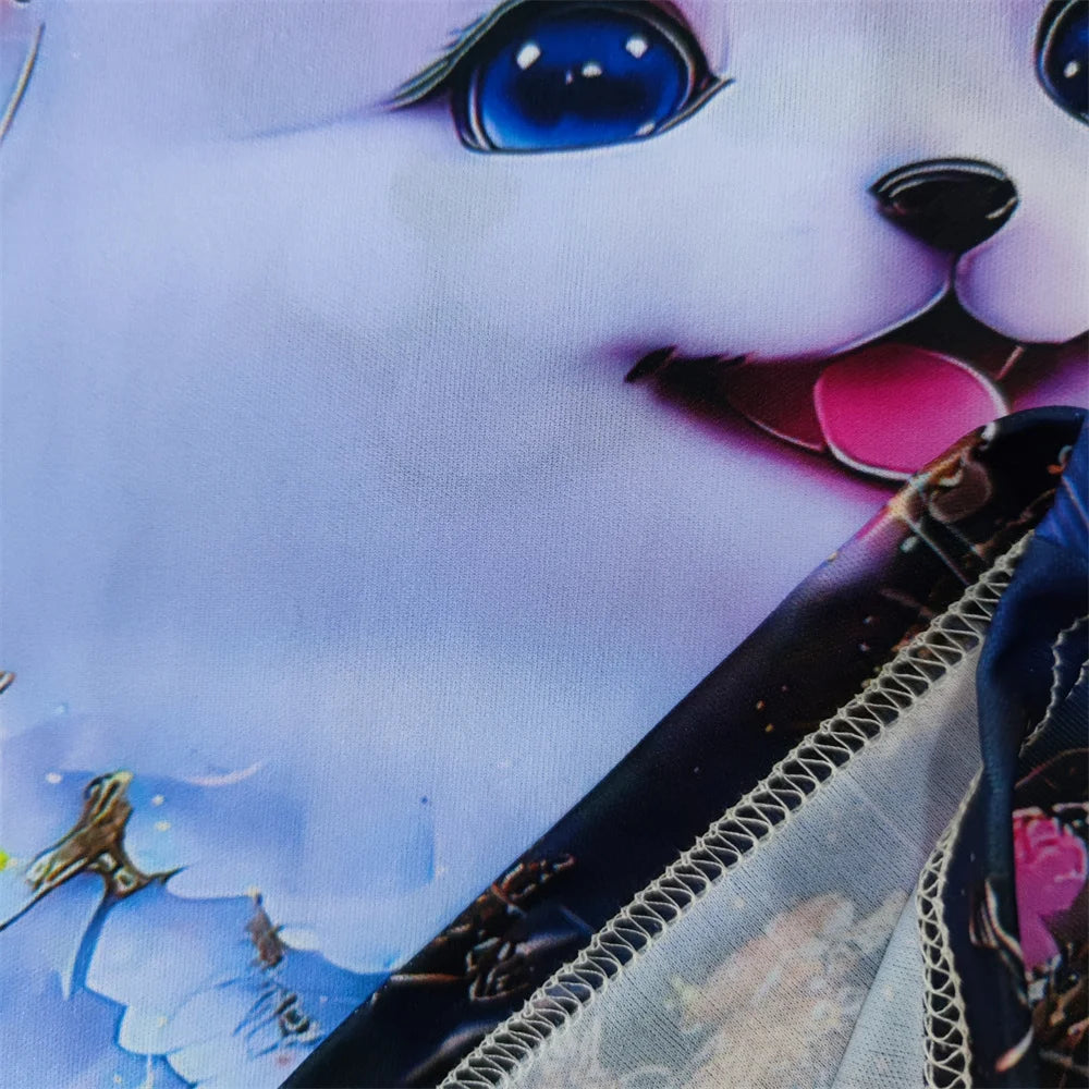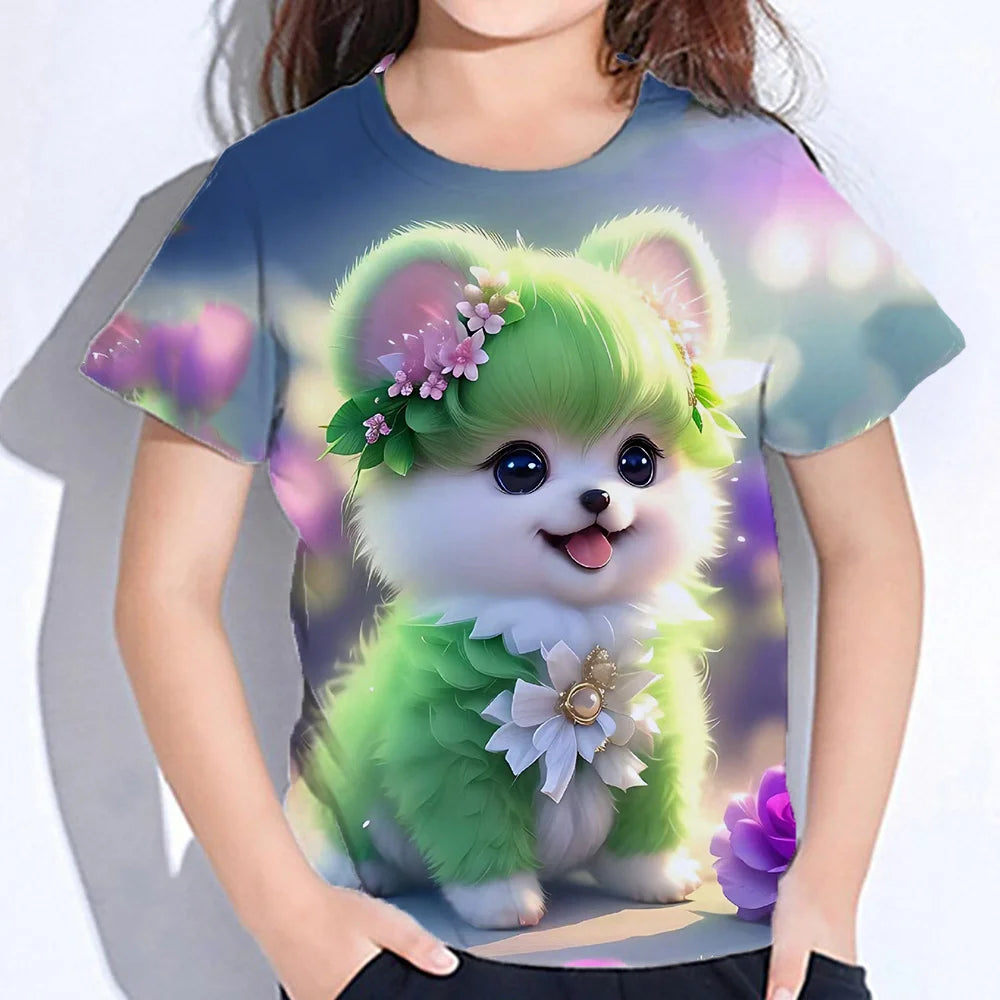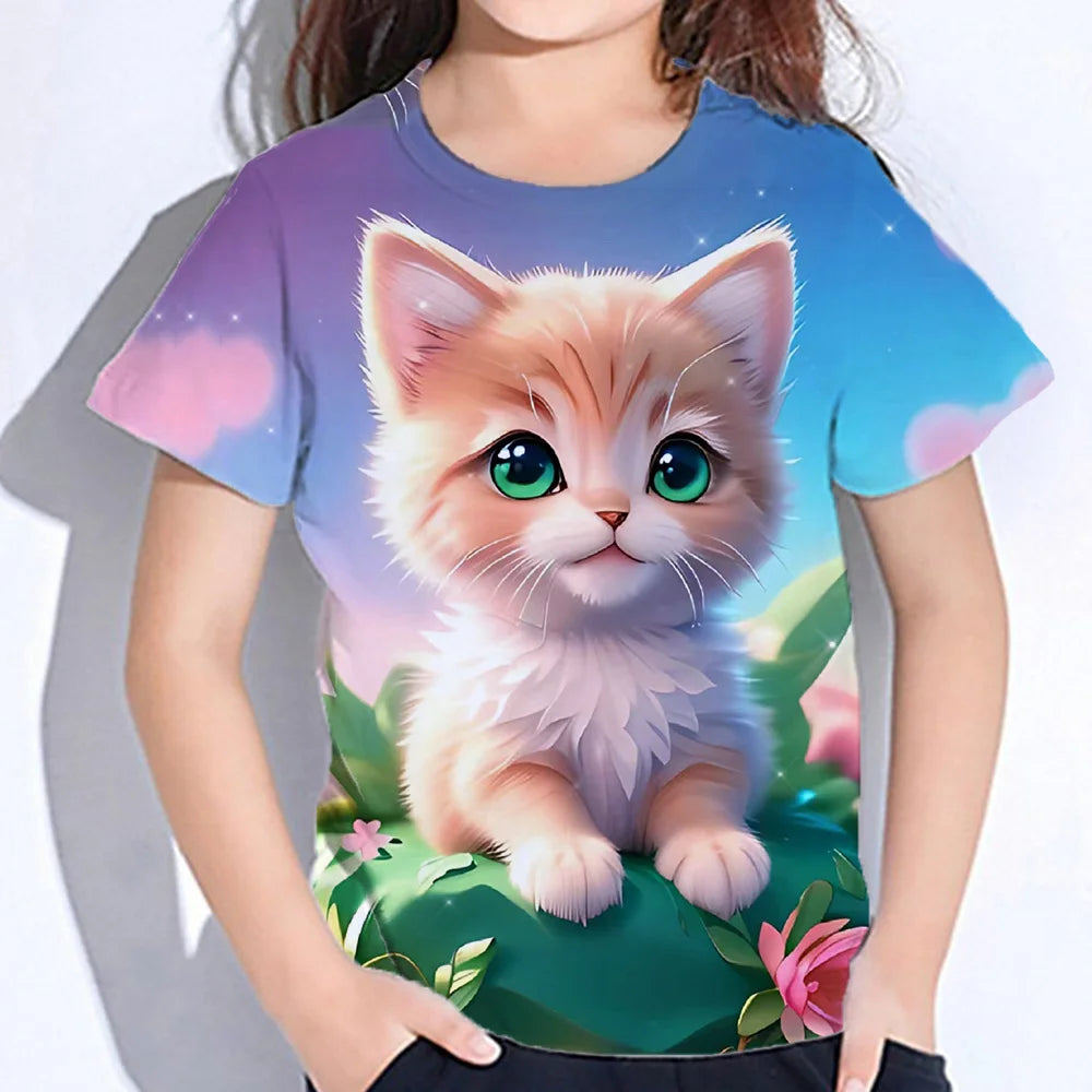 2024 Girl Summer Tops Girls Clothes 2 to 8 Years Short Sleeve Children T-Shirt Cat Print Kids T Shirt Kawaii Children's Clothing