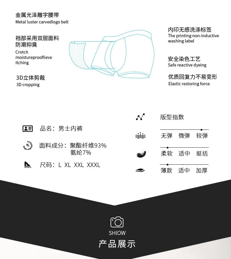4Pcs/Lot Men's Underwear Fashion Boxer Solid Color Sexy Men's Boxer Shorts Comfortable Breathable Hip Lift Underwear for Men