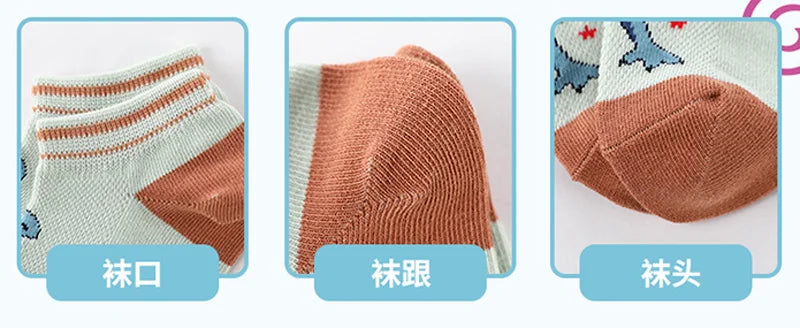5 Pairs Kids Socks for Children Boys Girls Cartoon Dinosaur Summer Low Cut Slipper Hosiery Ankle Footed Casual Sock 1-12 Years