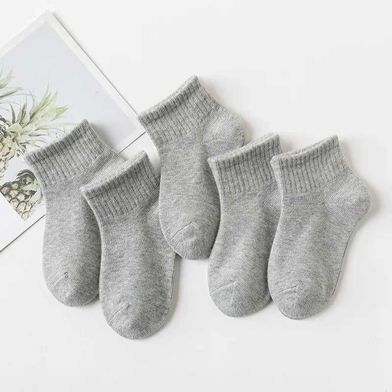 5 Pairs/Lot 2024 New Summer Children Socks Cotton Kids Teen Fashion Black White Gray For 1-12 Years Student Baby Girl Boy Socks