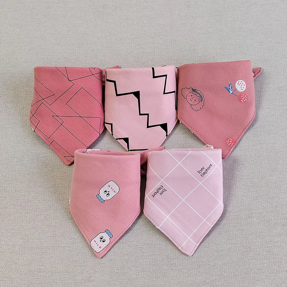 5pcs/lot Baby Bibs Triangle Double Cotton Bibs Cartoon Print Saliva Towel Baby Boys Girls Feeding Apron Cotton Bandana Bibs