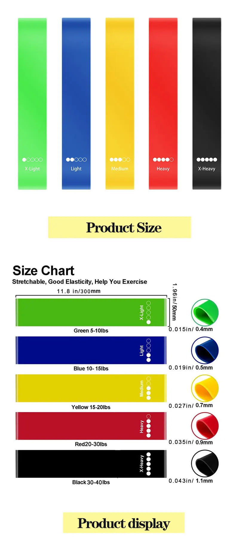 5Pcs/Set Yoga Resistance Rubber Bands Bodybuilding Elastic Bands Pilates Gym Workout Bands Expander Belt Fitness Equipment Pink