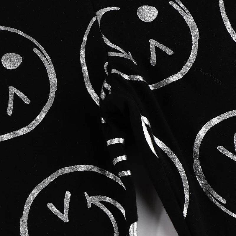AA-kids boy summer spring fashion clothes 2pcs set cotton long sleeve and short sleeve 2pcs clothes set smile print black set