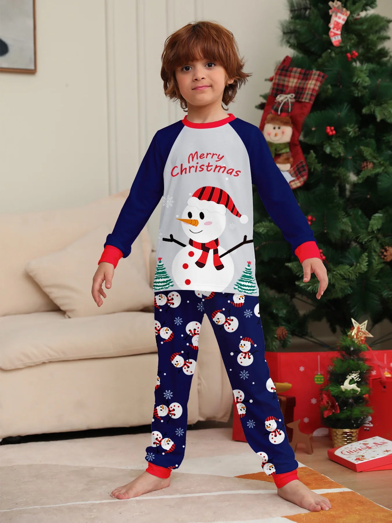 Autumn and winter white snowman Christmas matching parent-child outfit Mom and Dad children dog family pajamas pajama pants set