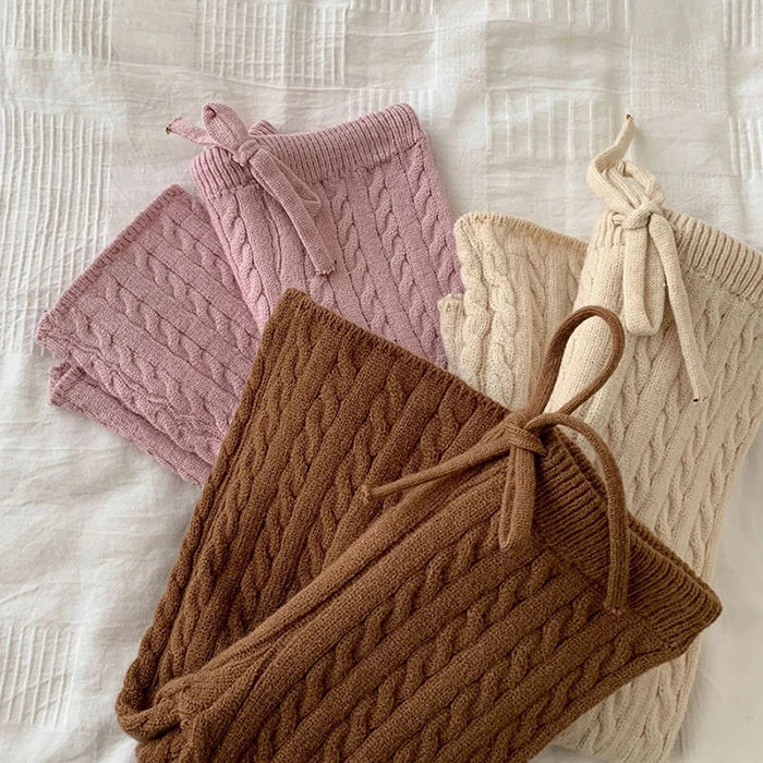 Autumn Spring Korean Style Kids Knitted Clothing Set Long Sleeved Solid Color Knitted Pullover+Pants Baby Girl Clothes Suit