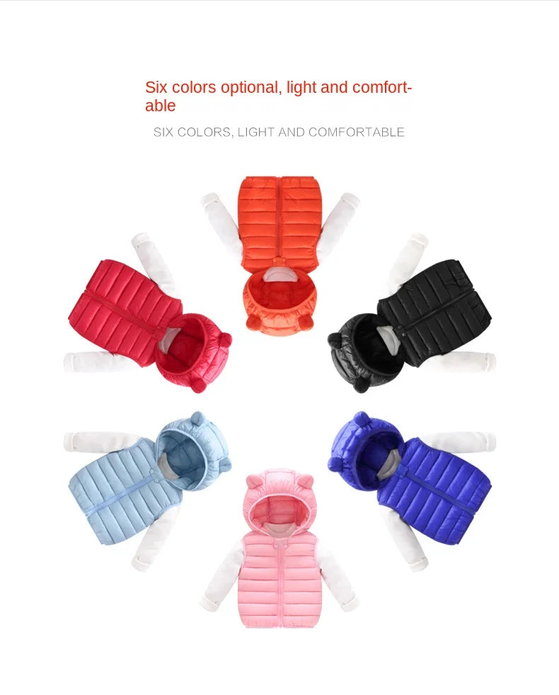 Baby Boys Girl Warm Down Vest Toddler Cotton Waistcoat Children Autumn and Winter Clothes Kids Hooded Jackets 1-6 Years Old