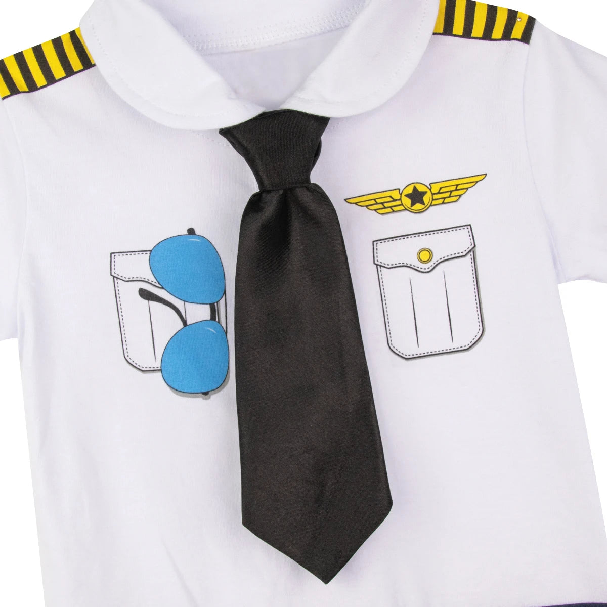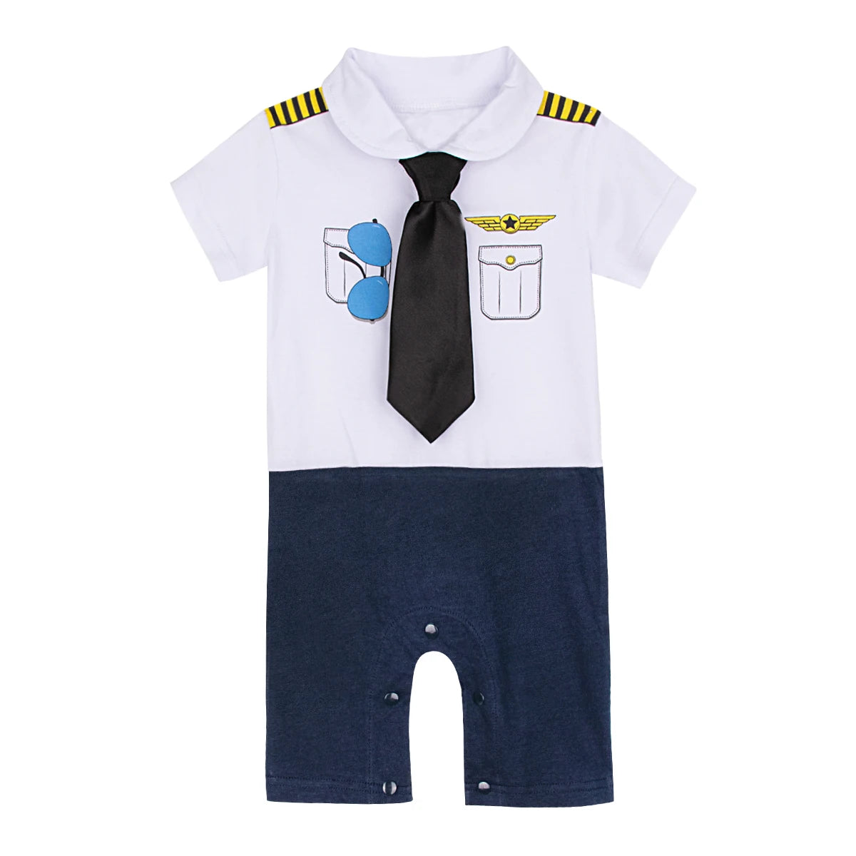 Baby Boys Pilot Romper Halloween Outfits Infant Cosplay Jumpsuit Toddler Clothing Sets with Tie Hat Newborn Outfits