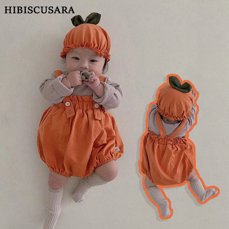 Baby Halloween Costumes Pumpkin Lantern Suspender Short Pants Hat 2pcs Sets Toddler Boys Girls jack-o'-lantern Outfits