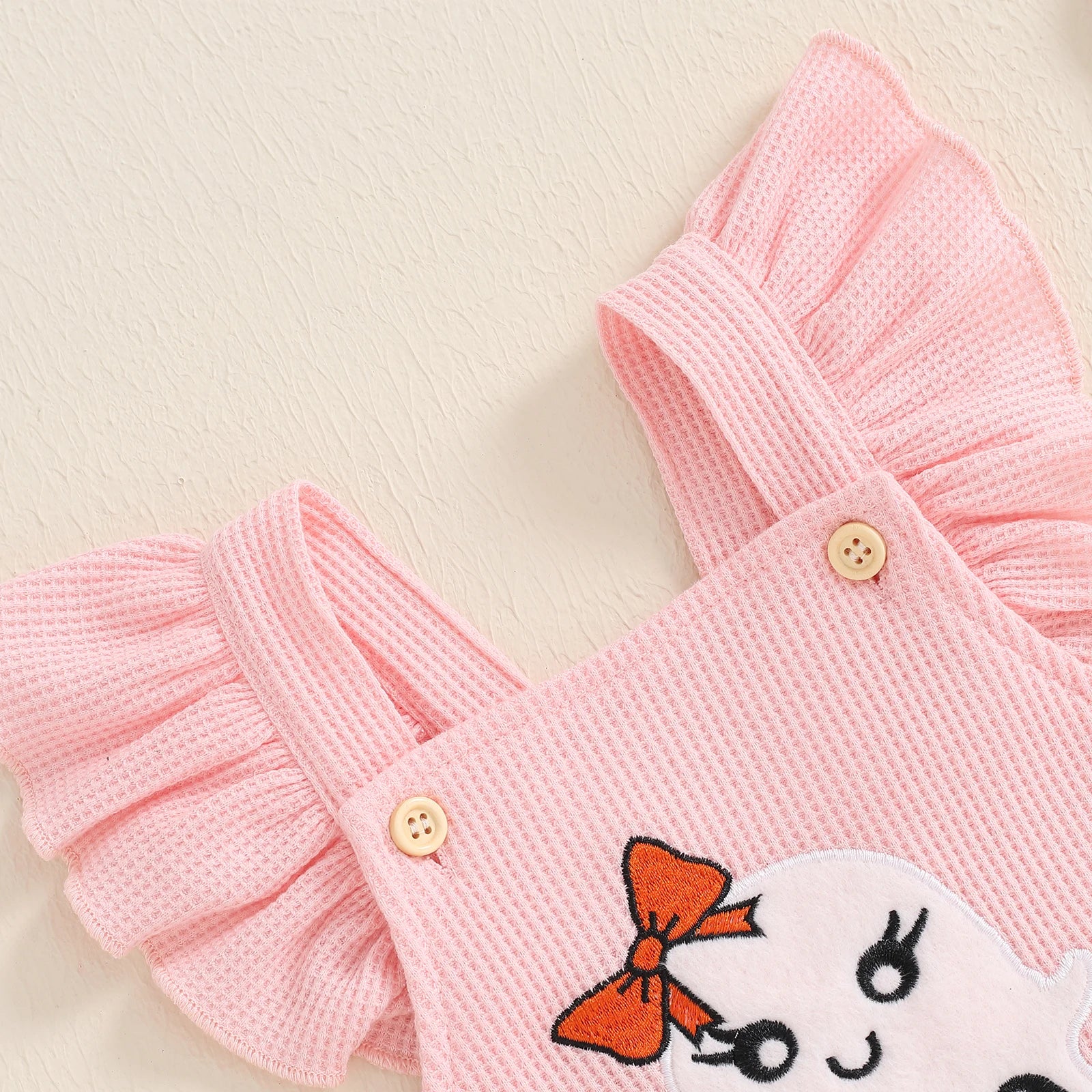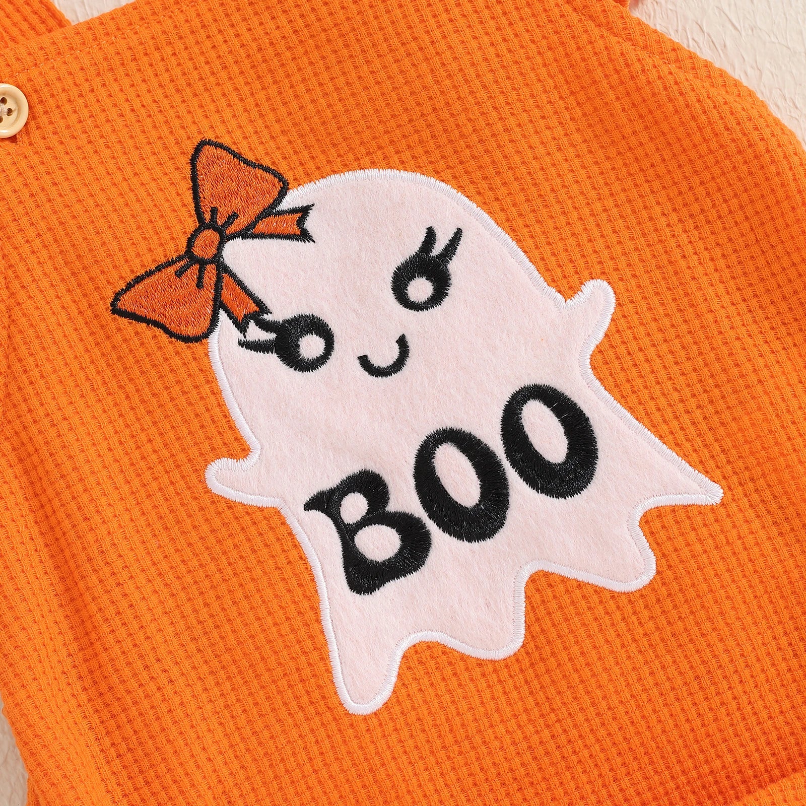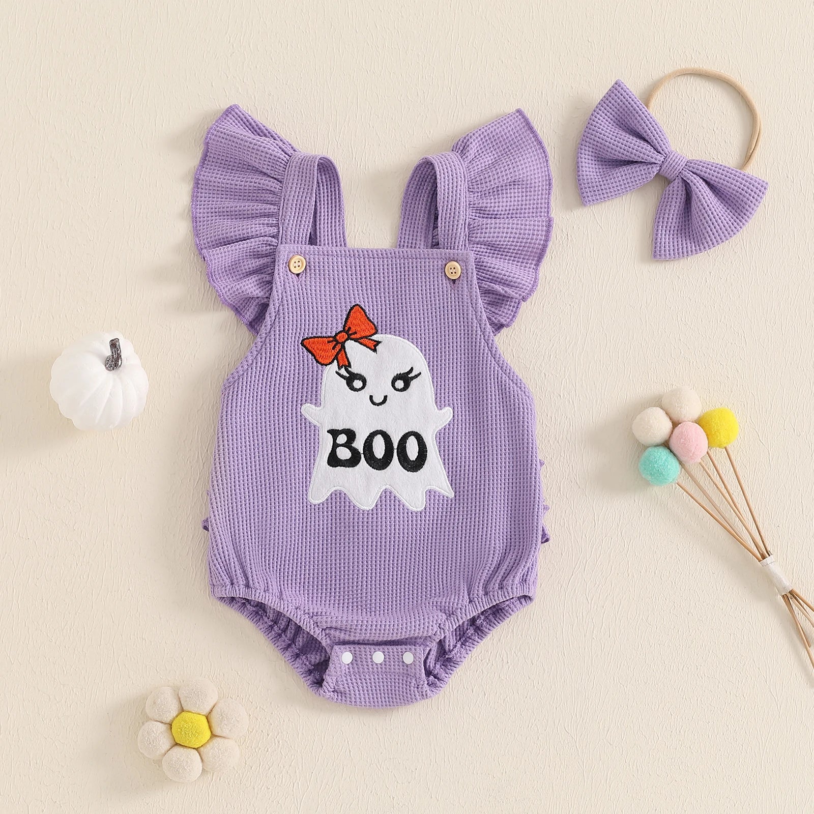 BeQeuewll Flying Sleeve Newborn Baby Girls Bodysuit Cute Infant Outfits Embroidery Ghost Romper with Hairband Halloween Clothes