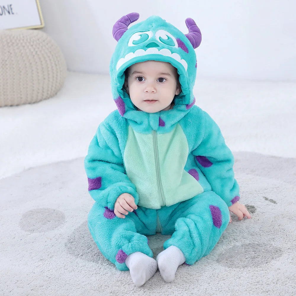 Blue Monster Onesie Baby Boy Girl Costume Sully Cosplay Cute Halloween Jumpsuit Chlidren Zipper Pajama Animal Cow Kigurumis
