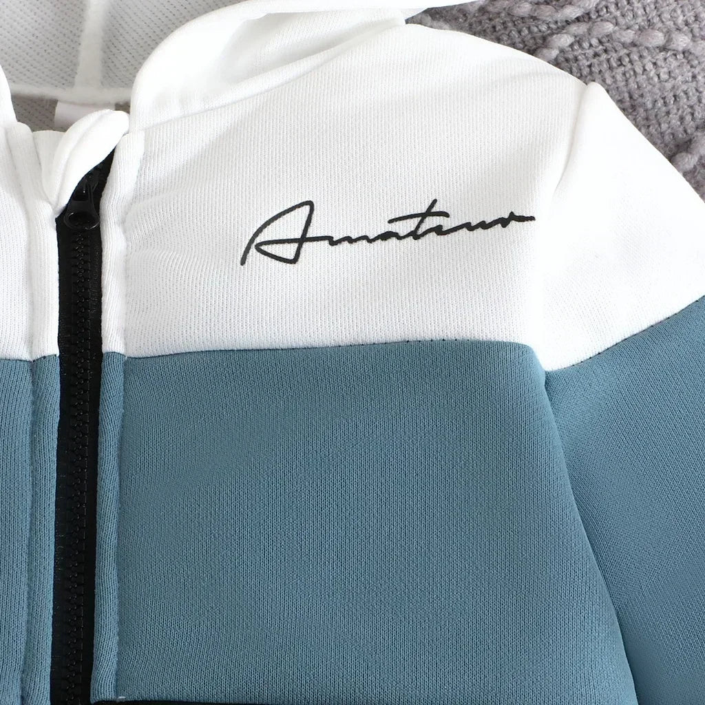 Boys suit 2-7 Years Old Colorblock Coat Long Sleeve Sweatshirt Hoodie Outerwear Trousers suit Children Fashion Clothing