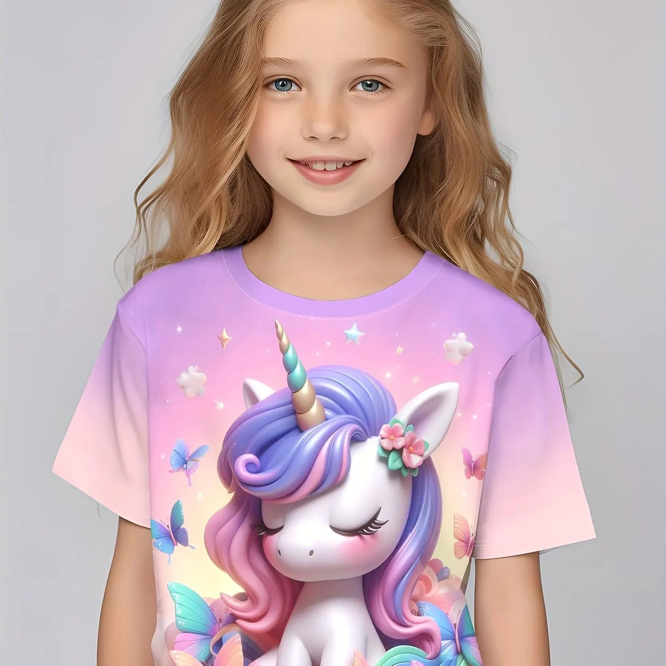 Children Clothing Girls Enchanting 3d Fairy Print Short Sleeve T Shirt Tops Comfortable Crew Neck Casual Tees Kids Girl Clothes