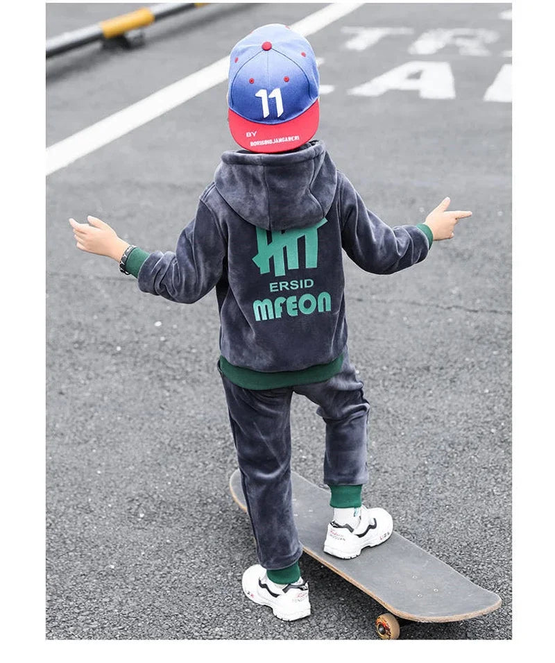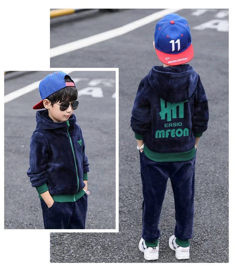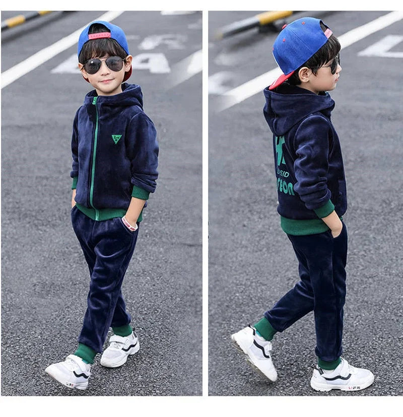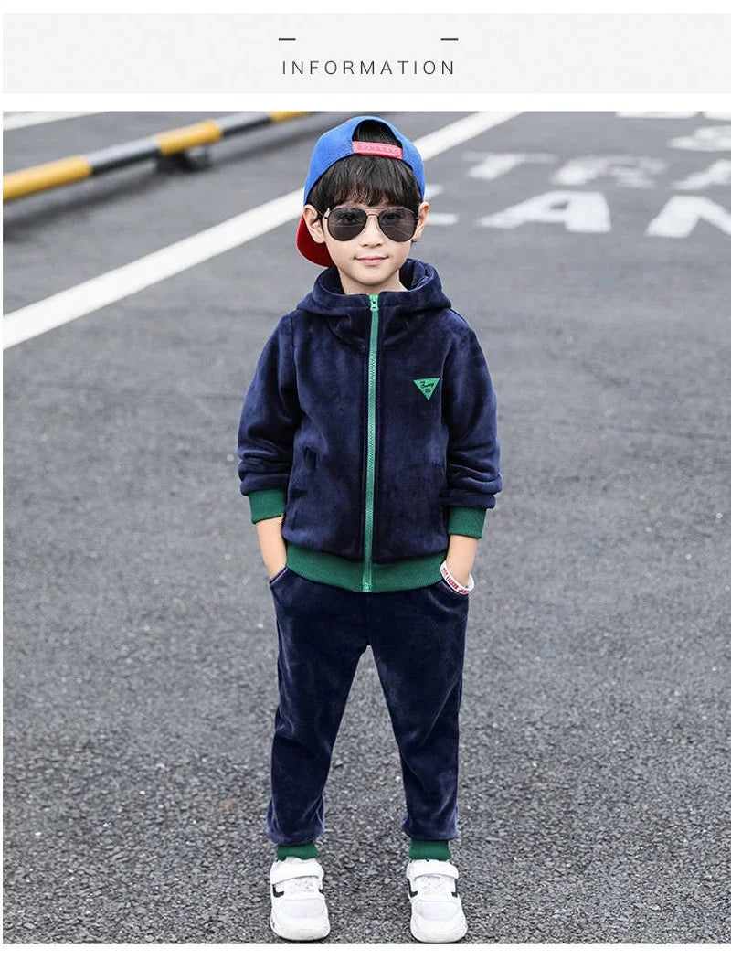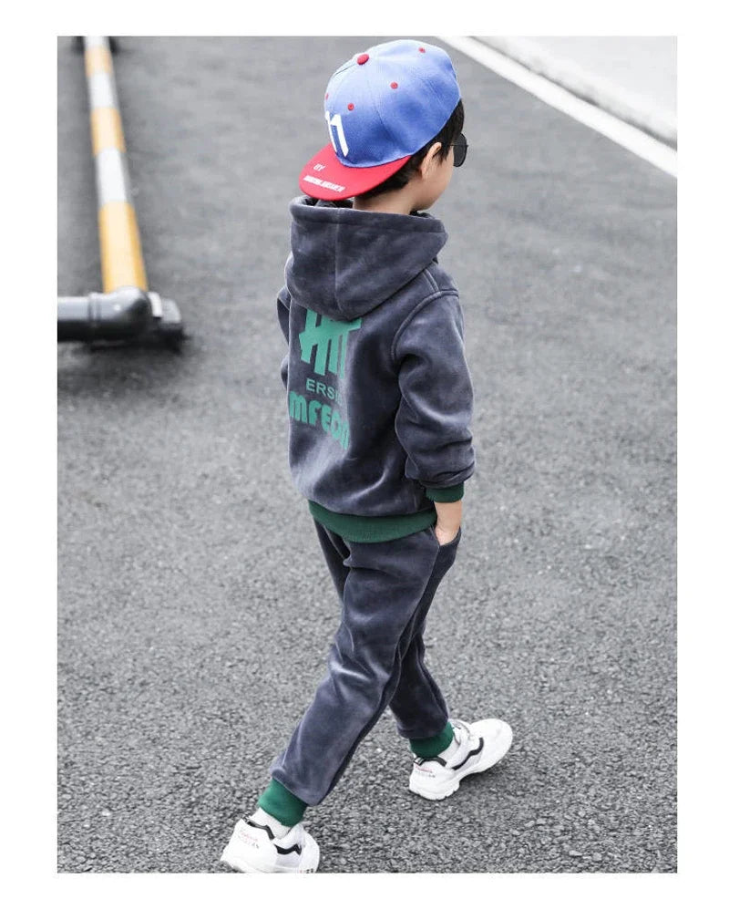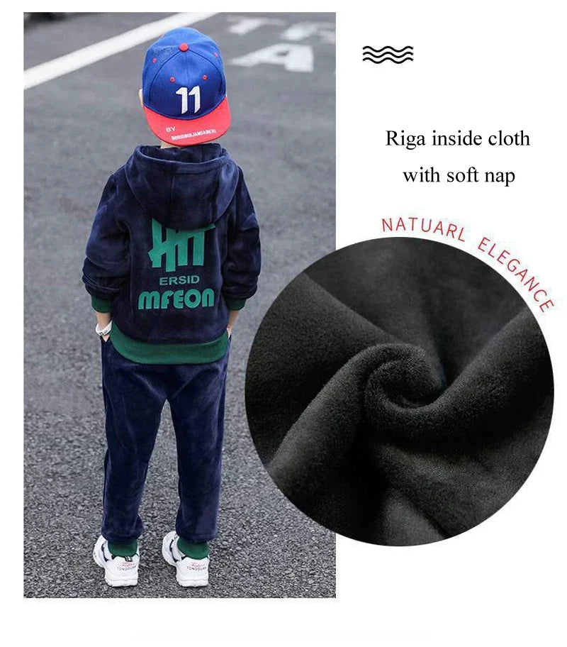 Children Clothing Set Double-sided Velvet Fashion Letter Hooded 2PCS Hoodies Coat +Pants Kids Boys Tracksuit for Autumn Winter