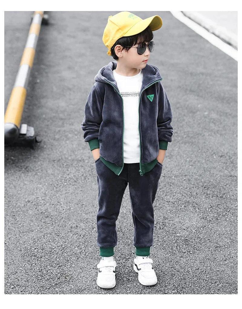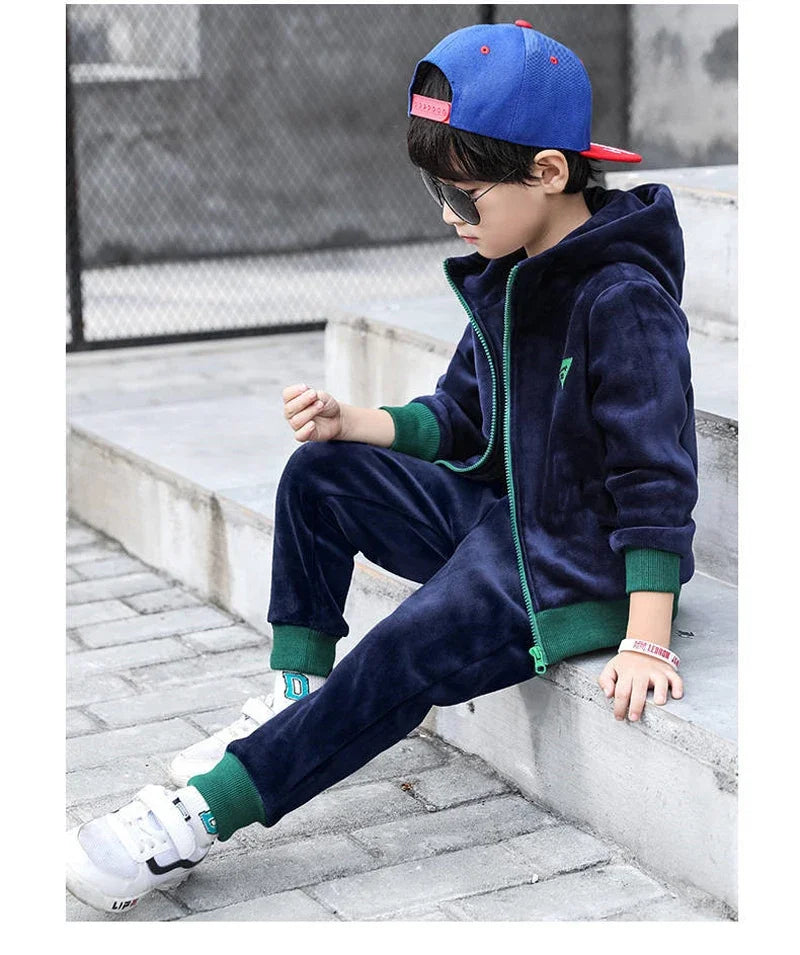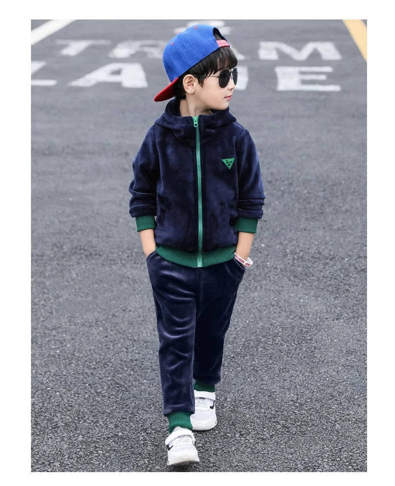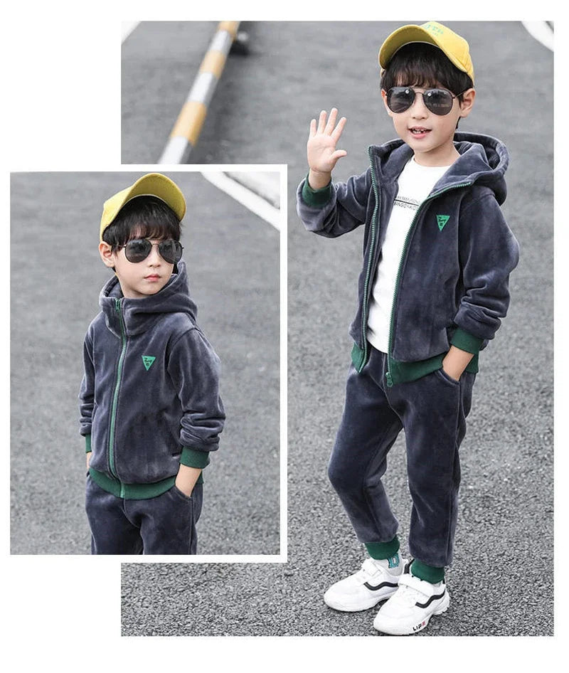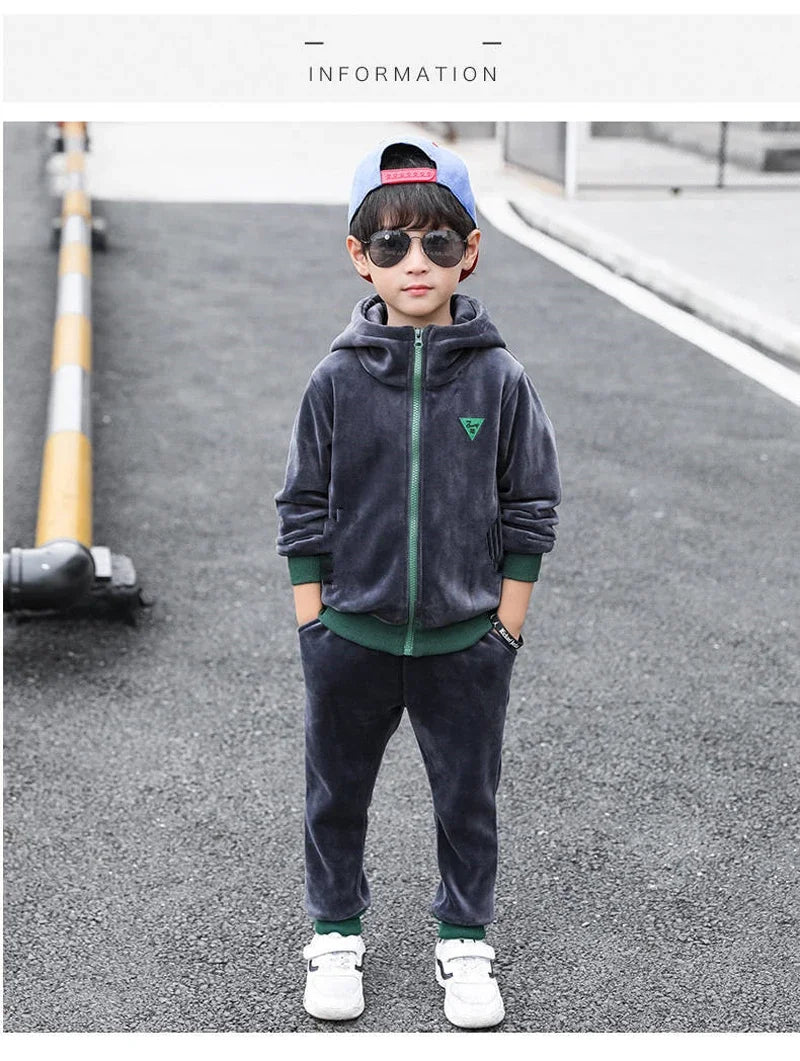 Children Clothing Set Double-sided Velvet Fashion Letter Hooded 2PCS Hoodies Coat +Pants Kids Boys Tracksuit for Autumn Winter