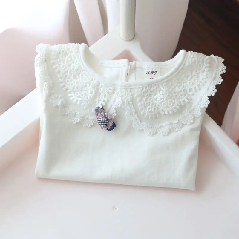 Children's Shirts School Girls White Tops Long Sleeve Lace Shirts Kids Shirt Baby Toddler Teen Casual Children Clothes