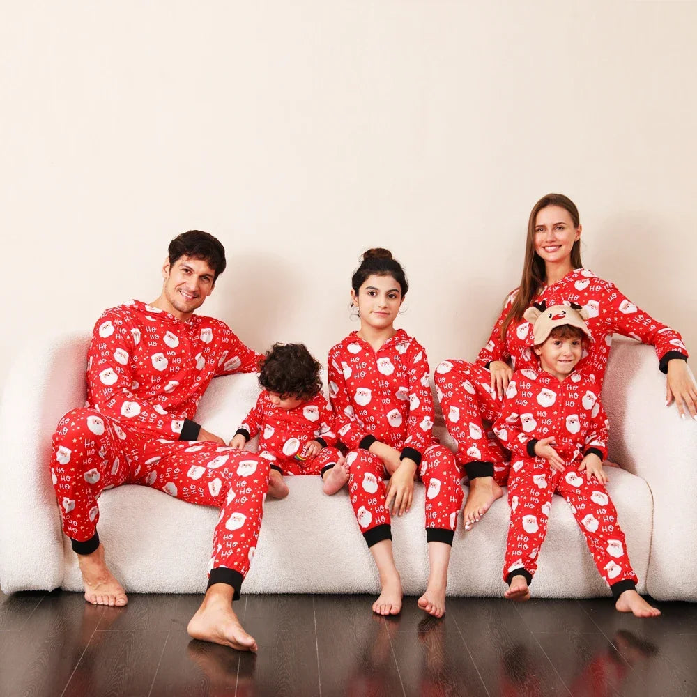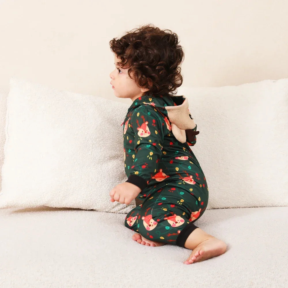 Christmas Gift Mother Father Kids Matching Outfits Cute Deer Ear Hooded Romper Overall Soft Loose One-Piece Pajamas Family Look
