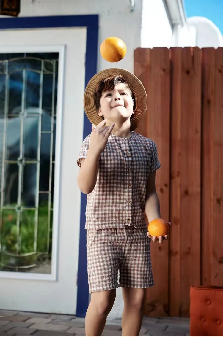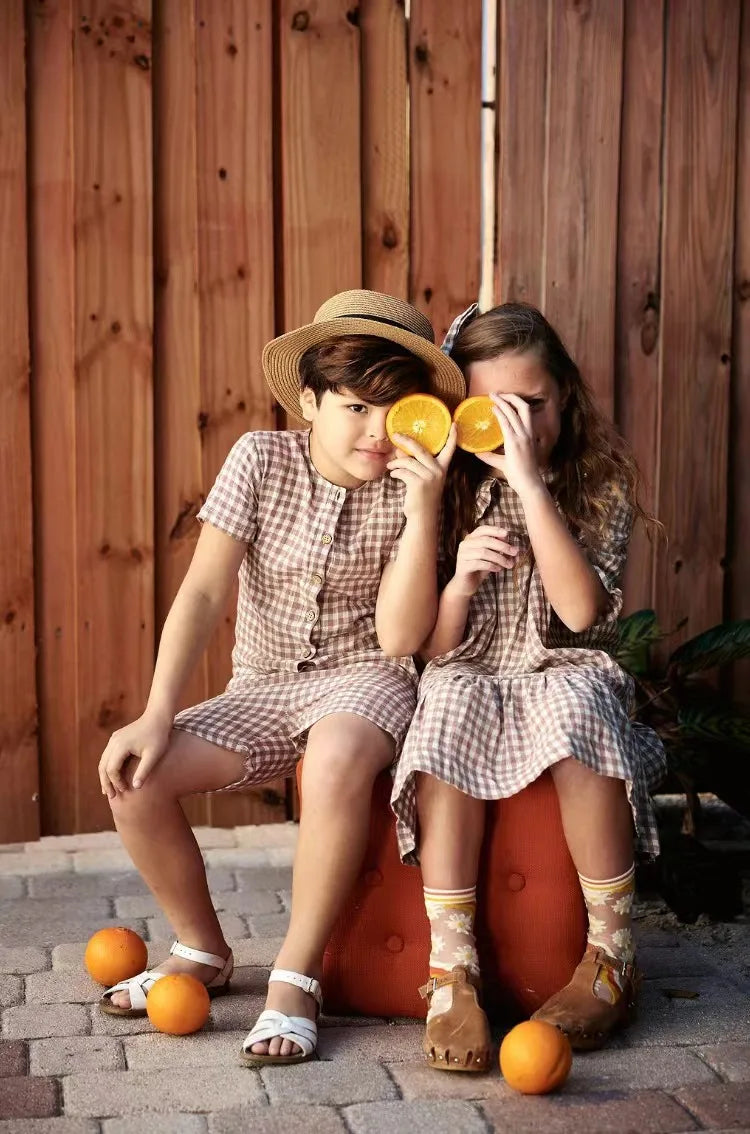 Clearance AS 2024 Summer Gingham Collection plaid Family matching baby kids boys girls clothes cotton linen fabric kids wear
