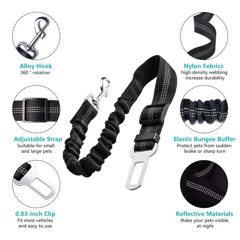 Dog Safety Leash Adjustable Retractable Cushioning Elastic Pet Leash Car Seat Seat Belt Safety Rope Tug Rope
