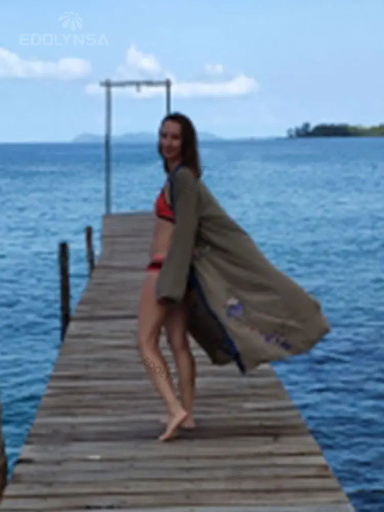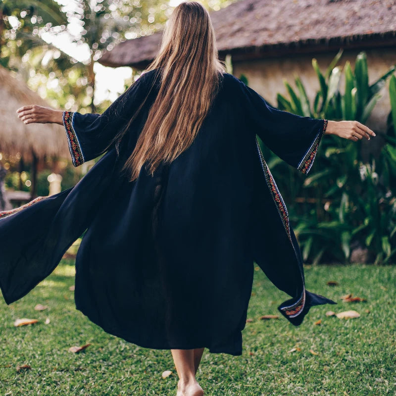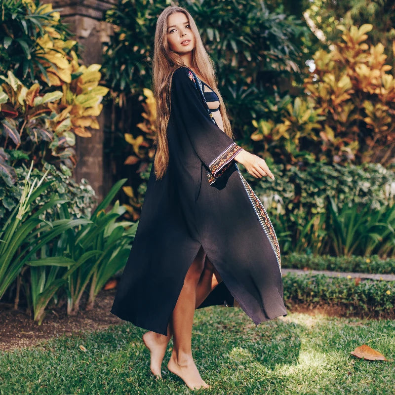 Embroidery Kaftan Beach Tunic Beach Cover up Saida de Praia Swimsuit Women Bikini cover up Pareo Sarong Beachwear Q882