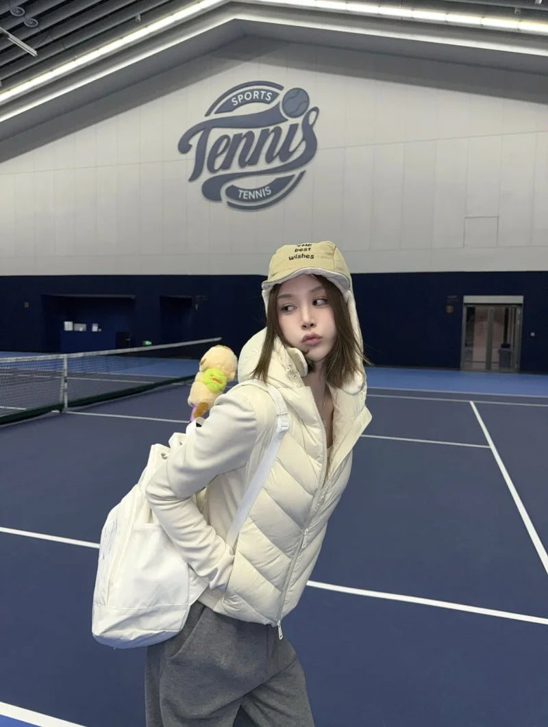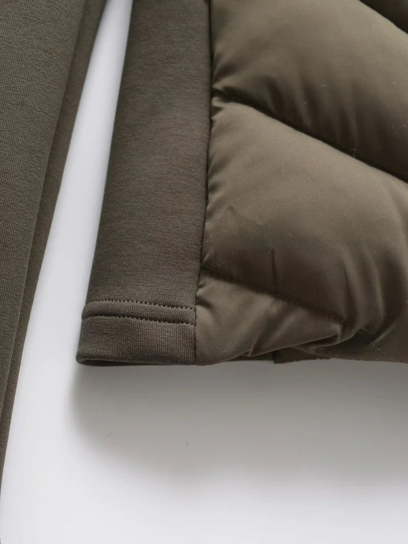 ETJ 2025 new women's elegant fashion patchwork long sleeve standing collar hooded cotton jacket sport coat 8073227