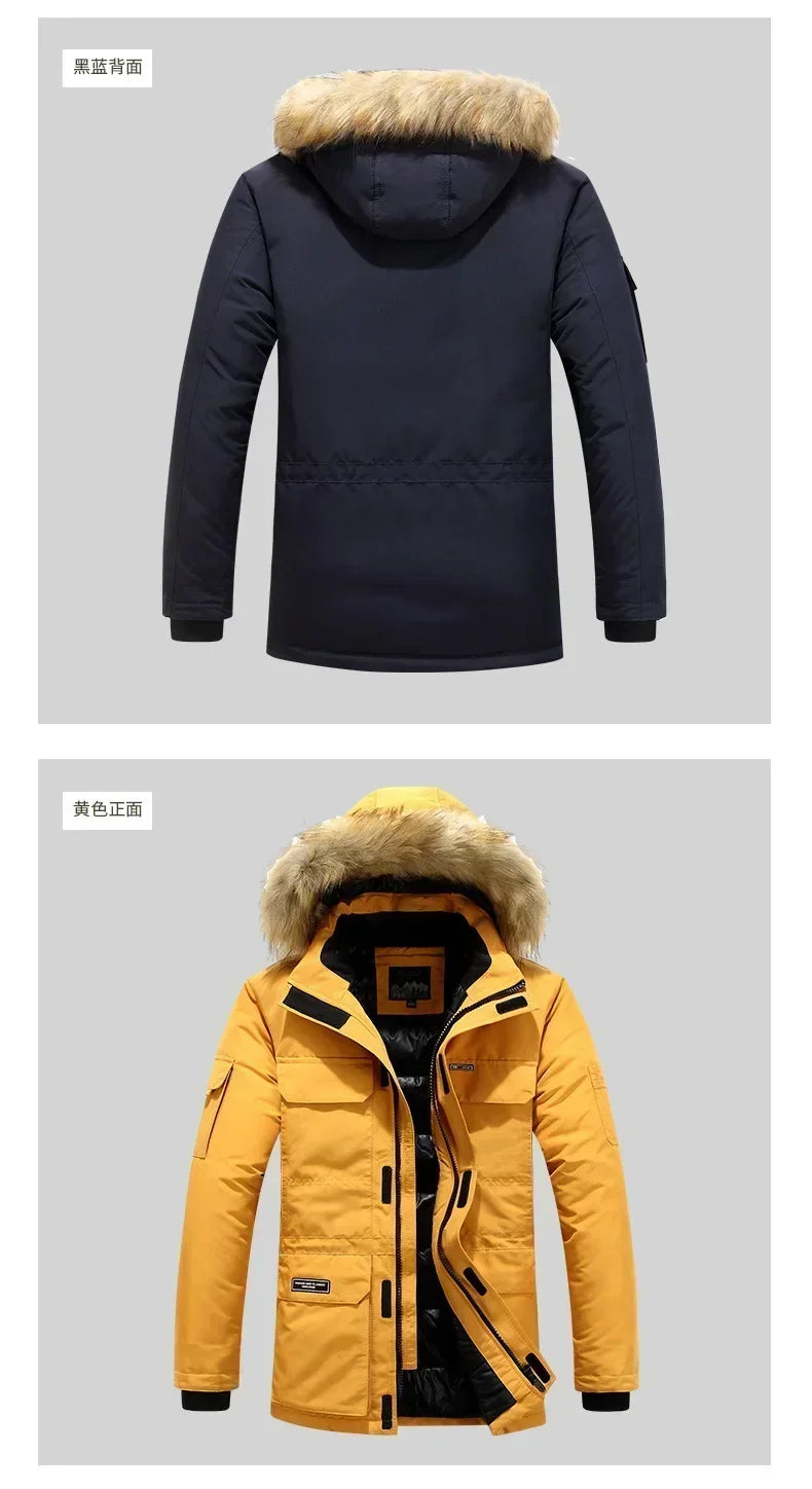 Fleece Winter Fur Hooded Parkas Men Duck Down Snow Jacket Windproof Coats Thickened -30 Degree Keep Warm Outdoor Outerwear
