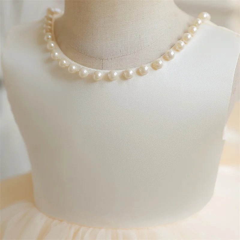 Flower Girl Dresses for Wedding Kids Lace Backless Tulle Tutu Princess Prom Party Clothes Baby 1st Birthday Baptism White Dress