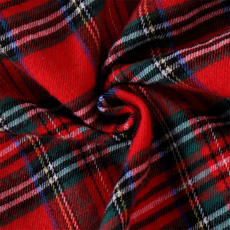 FOCUSNORM 0-5Y Autumn Winter Kids Girls Boys Christmas Pajamas Clothes Sets Plaid Print Turn Down Collar Shirts+Pants