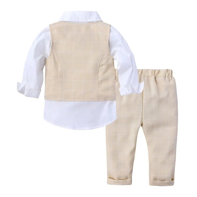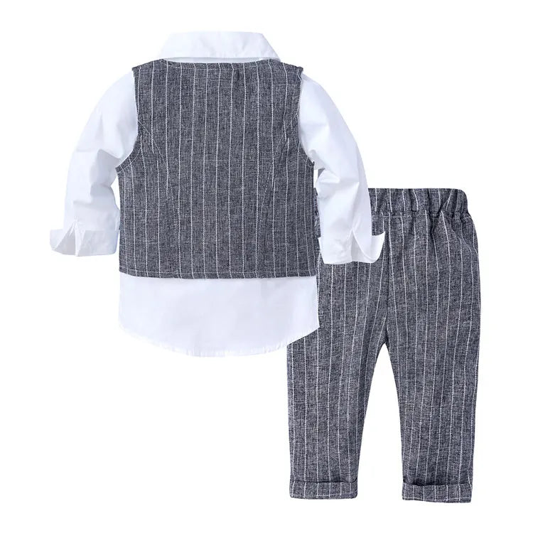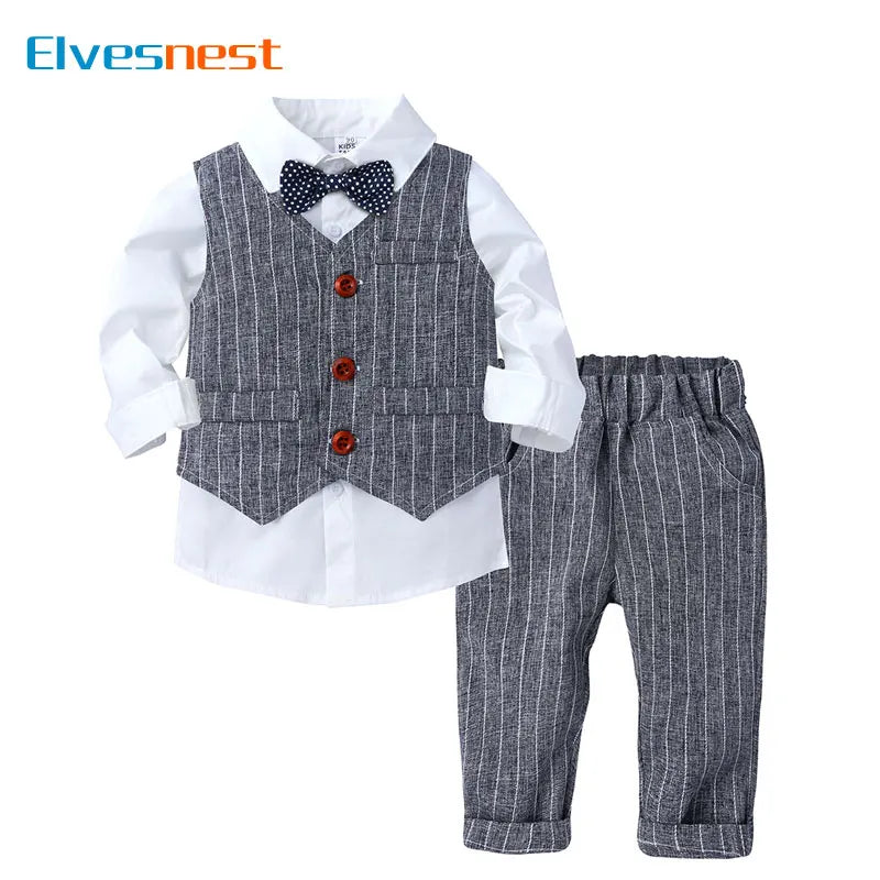 Formal Gentleman Style Children's Boys Sets Cotton Long Sleeve Shirt+Vest+Pants Spring Autumn Kids Clothes Boys Outfit 1-4 Years