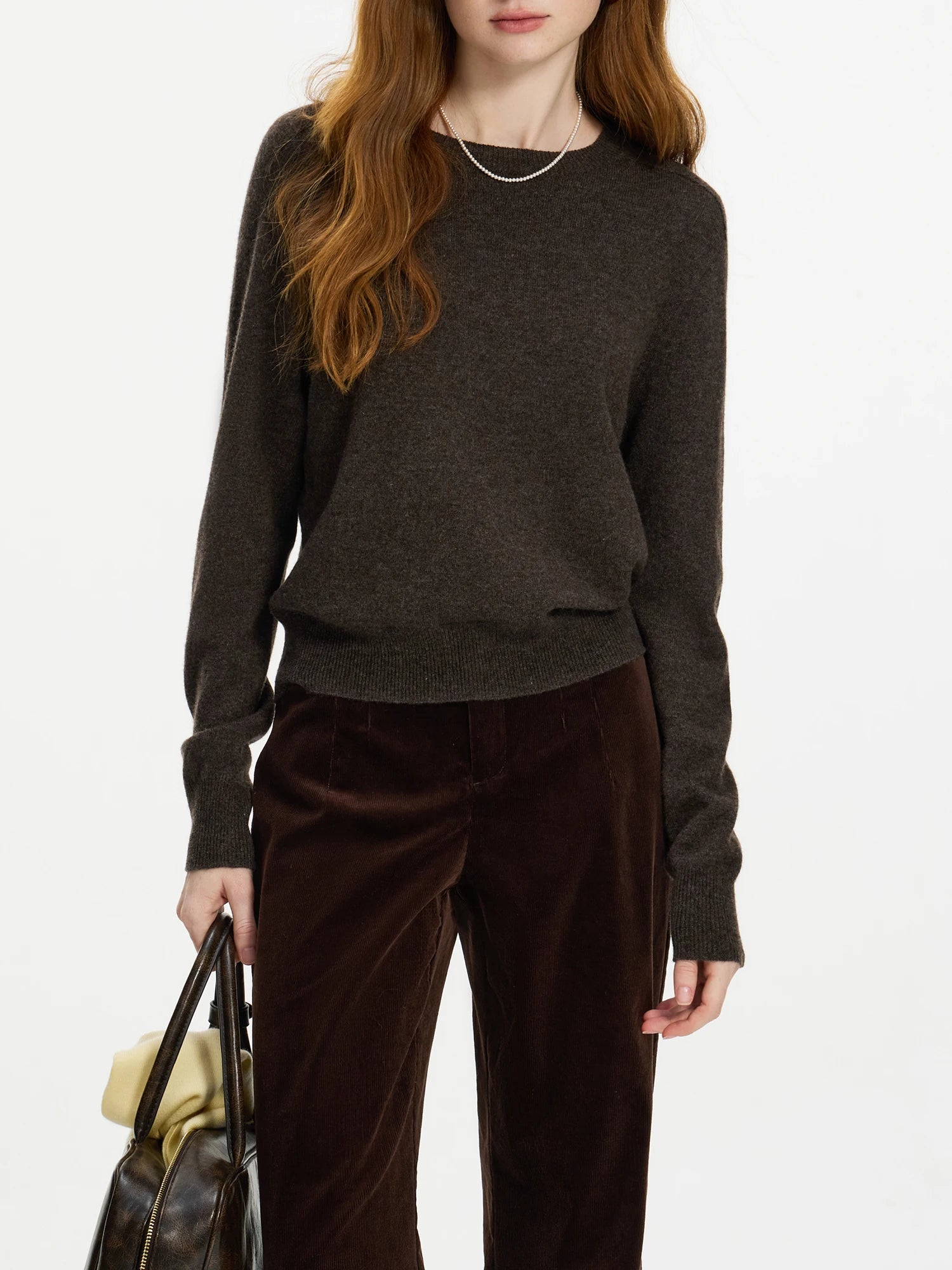 FSLE 100% Wool Seamless One-piece Knit Shirt Sweater For Women Autumn Winter New Design Wool Crew Neck Versatile Casual Sweater