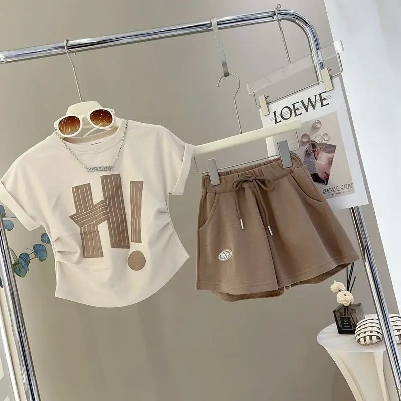 Girls Clothes Sets 2024 Summer Children Short-sleeved Suit Teenage Girls Letter T-shirt Shorts Tracksuit Outfit Clothing Set