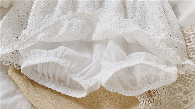 Girls Outfit Set 2022 Summer Clothing Sets Hollow Lace Suit Baby Casual Sleeveless T-shirt+Shorts Kids Clothes Sets Baby Clothes