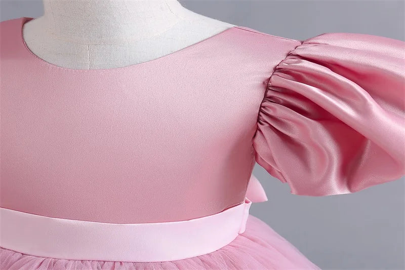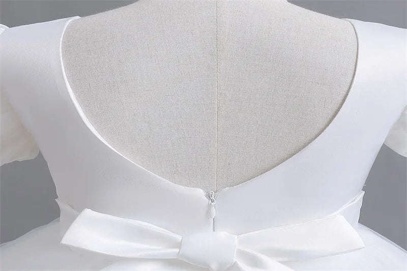 Girls White Cake Layers Dresses Kids Pull Sleeve Elegant Party Wedding Birthday Tutu Princess Vestidos Children Summer Clothes