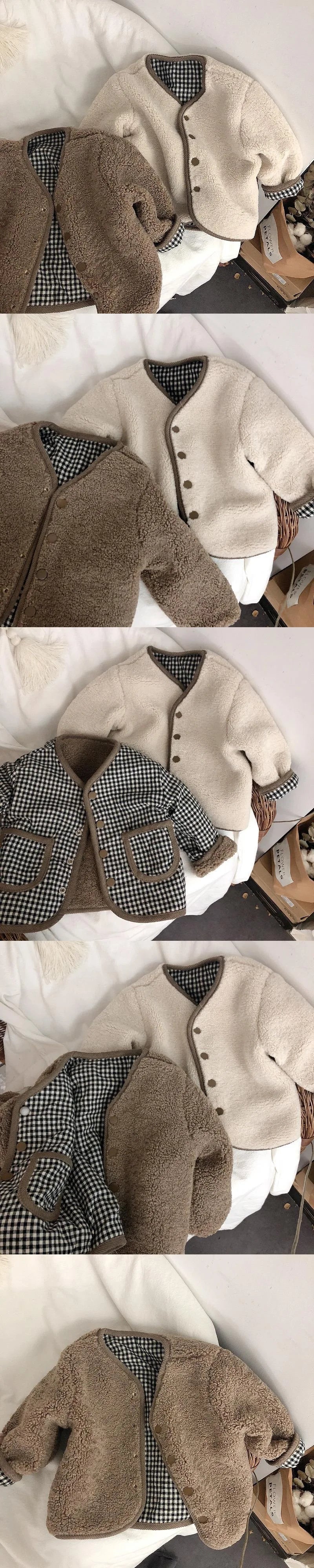 HoneyCherry Autumn and Winter New Warm Jacket Children Two Sides Wear Plaid Plush Jacket Kids Jackets