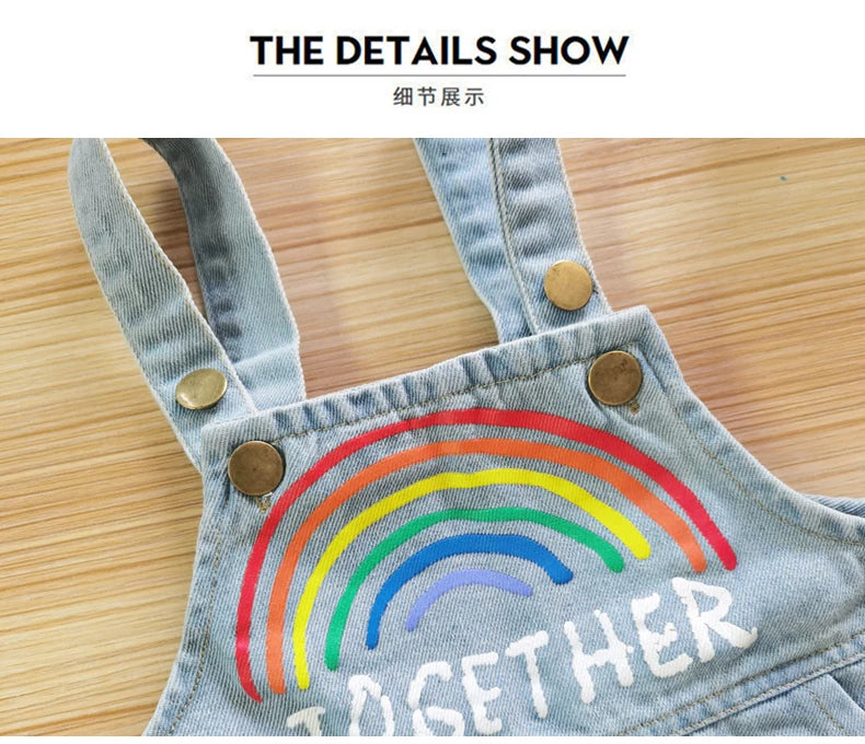 IENENS Baby Dungarees Girls Overalls Hole Wash Jeans Rainbow Print Trousers Denim Jumpsuit Toddler Infant Long Pants 0-4 Years
