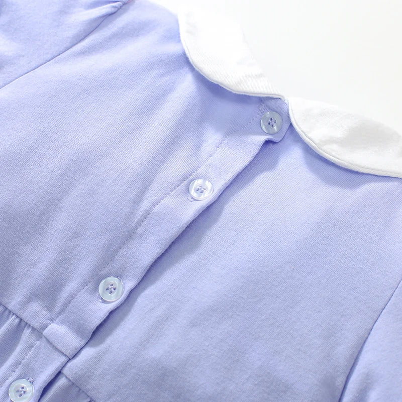 Little maven 2024 Kids Clothes Summer Princess Blue Dress for toddler Girls Children’s Clothes Cartoon Embroidery Flowers Cotton