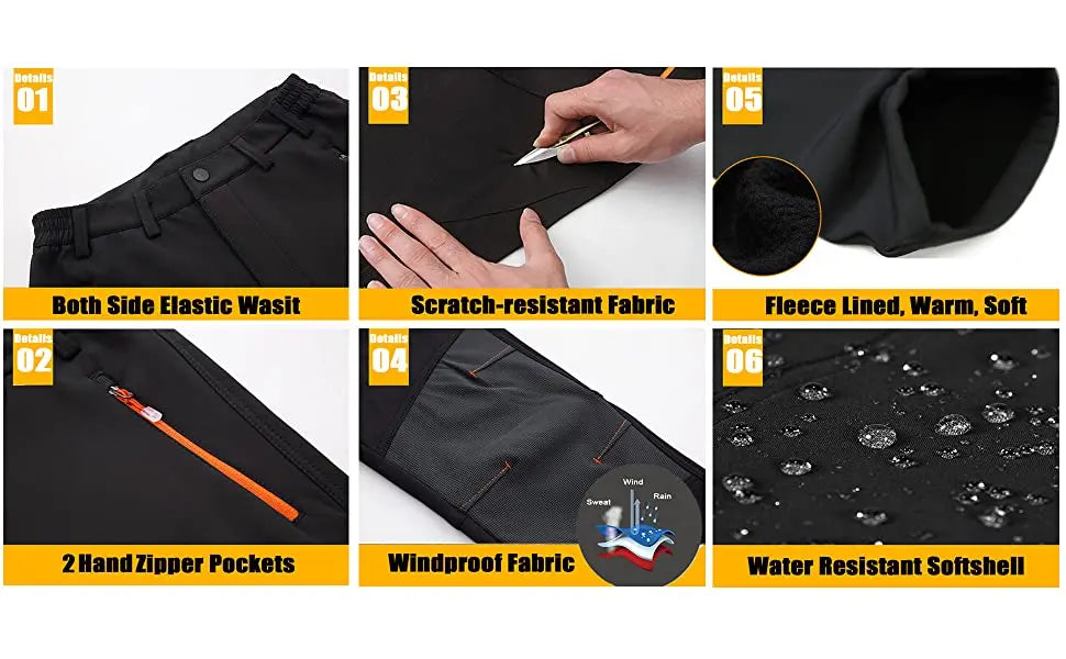 MAGCOMSEN Fleece Pants Men's Snow Ski Pants Windproof Shell Hiking Pants with 4 Zipper Pockets Winter Waterproof Trousers