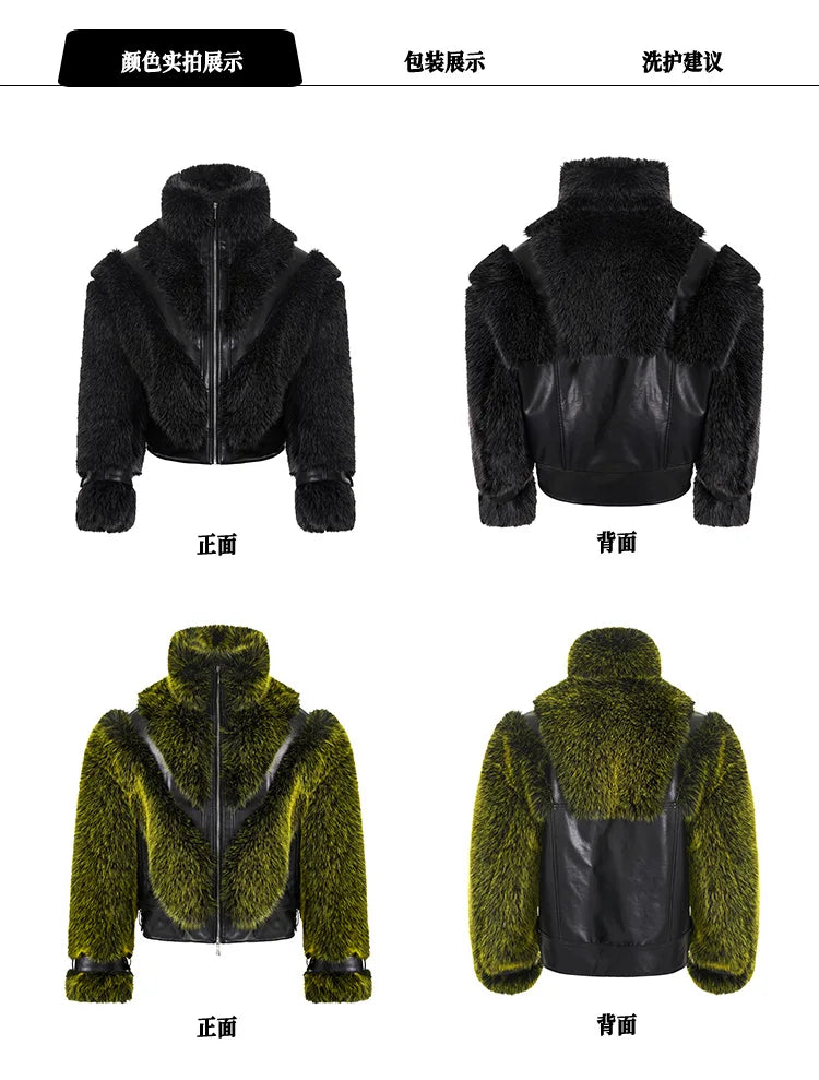Mauroicardi Autumn Winter Cool Handsome Thick Warm Patchwork Faux Fur Coat Men Luxury Designer Clothes Zip Up Fluffy Jacket 2025