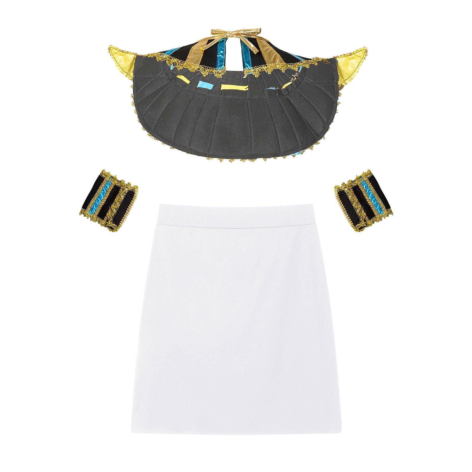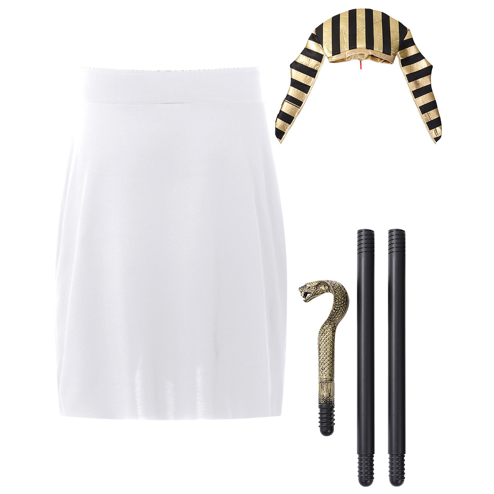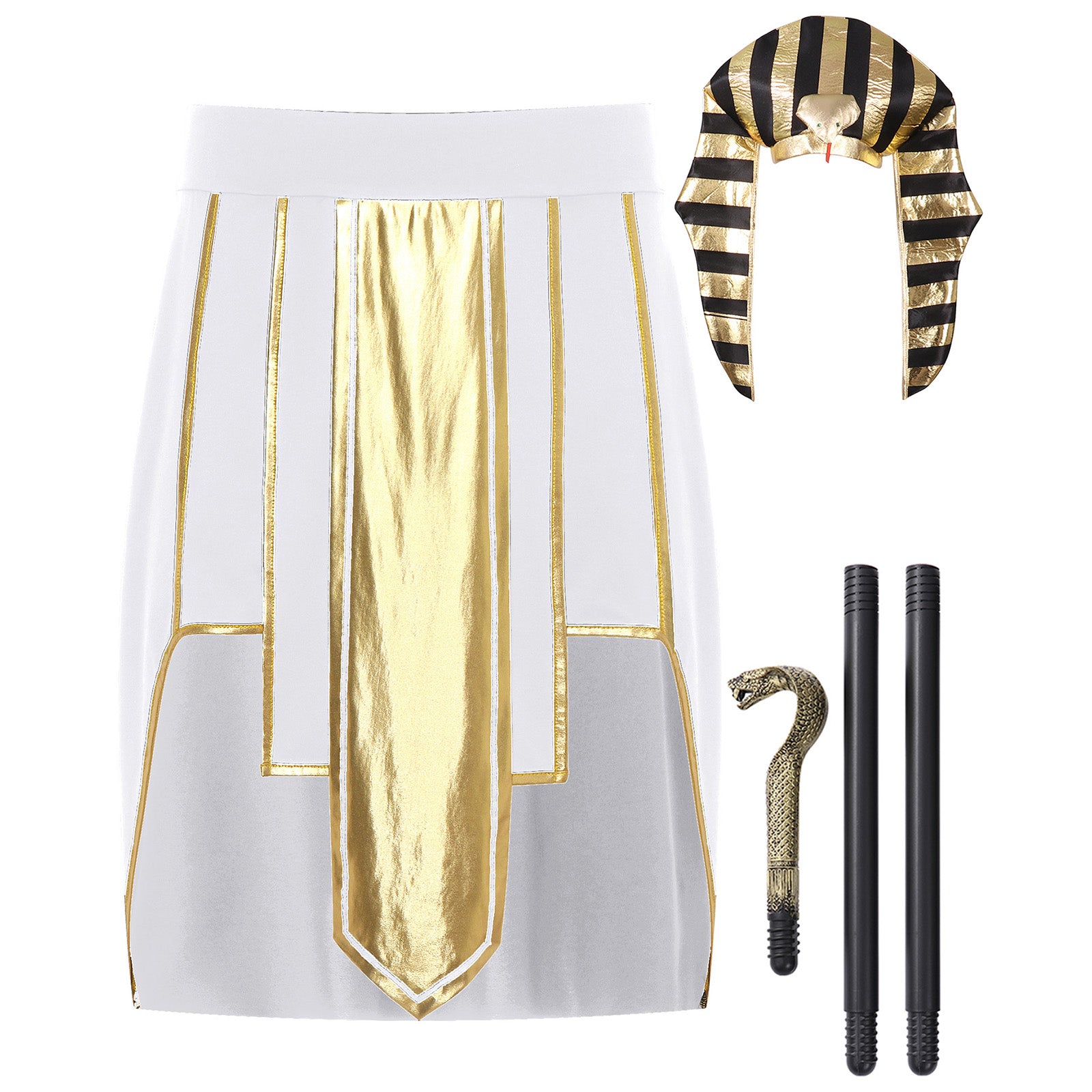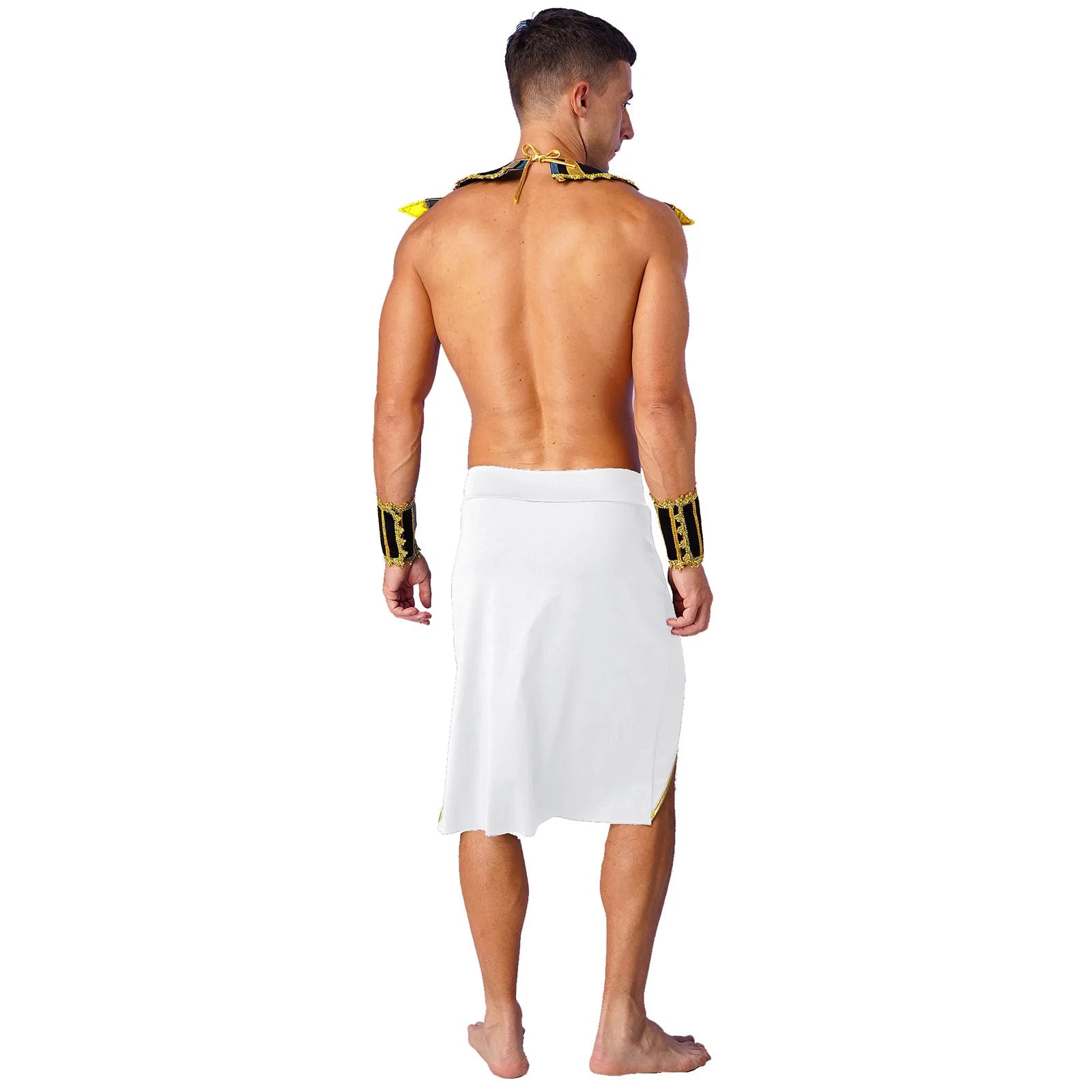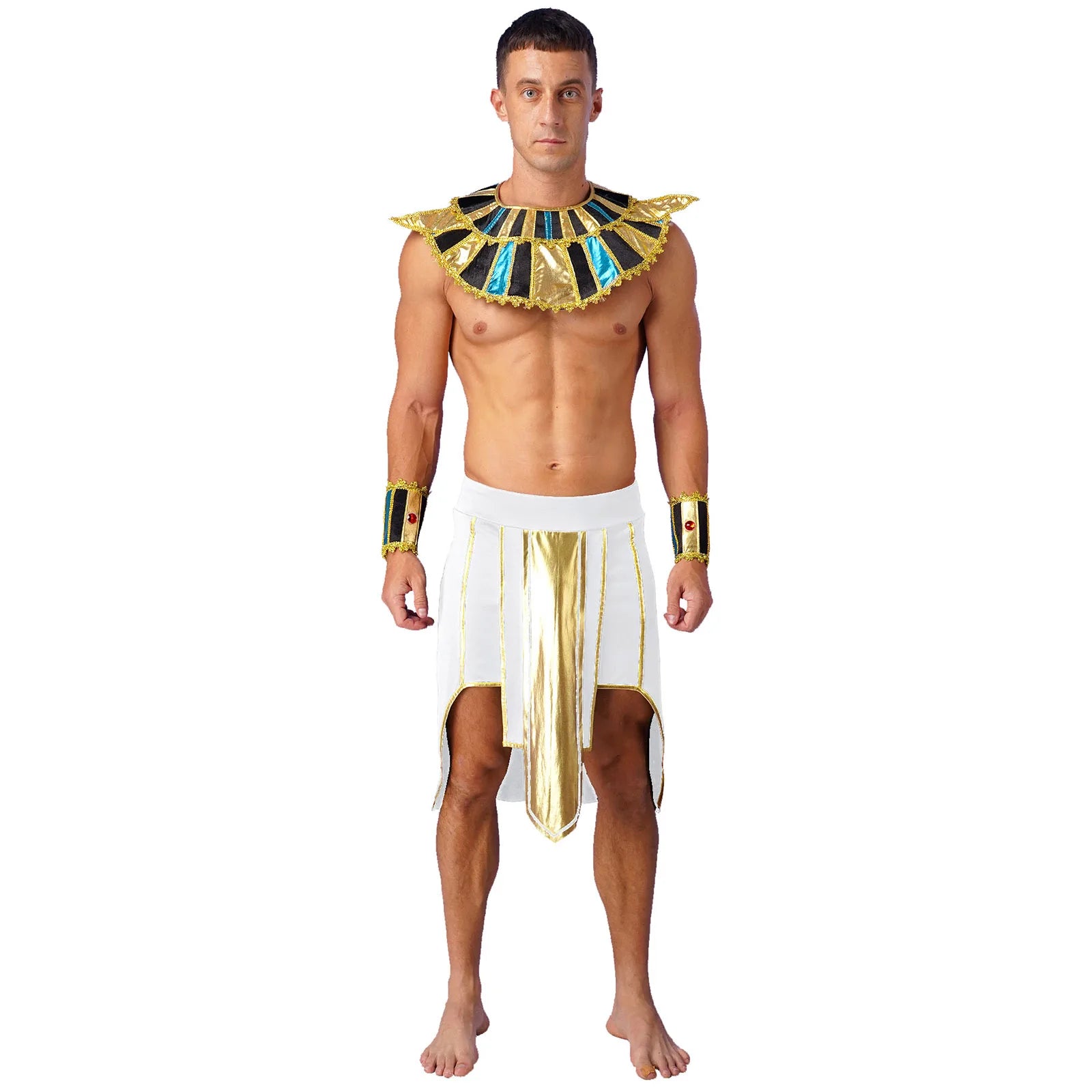 Mens Ancient Egyptian Pharaoh King Cosplay Costume Halloween Fancy Dress Skirt with Cuffs Collar Outfit for Theme Party/Stage