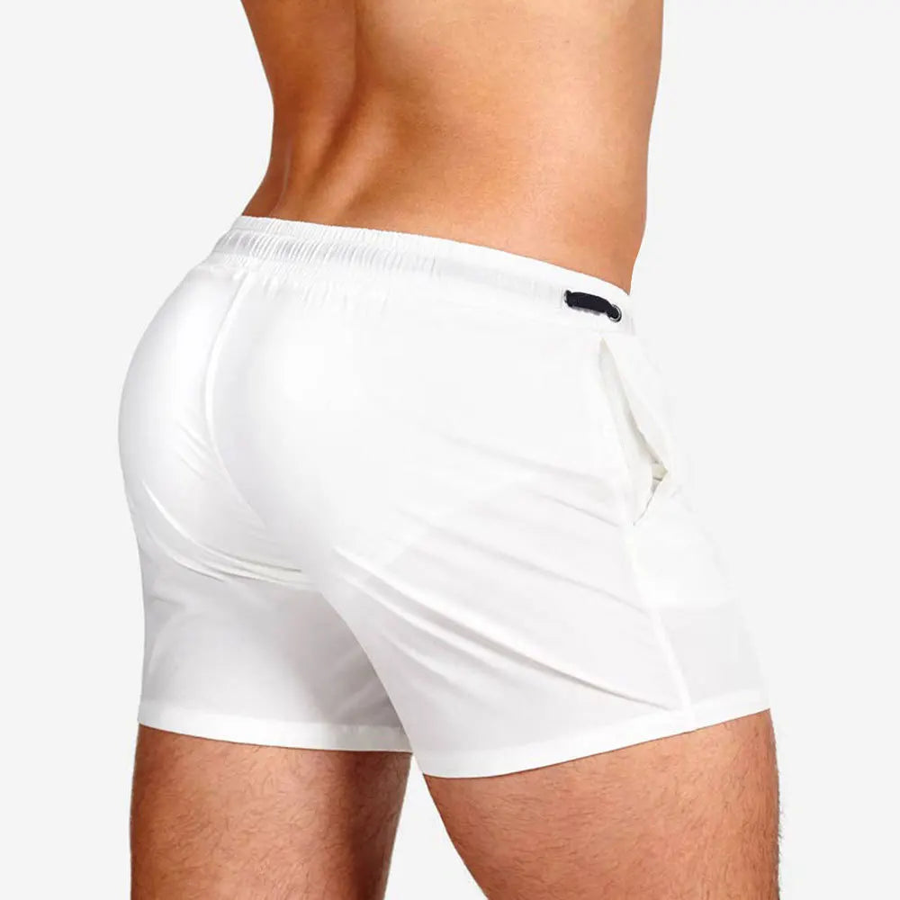 Men's Tight Short Swimwear Swim Trunks Quick Dry Solid Board Shorts Beach Pants Bathing Suits With Pockets and Mesh Lining