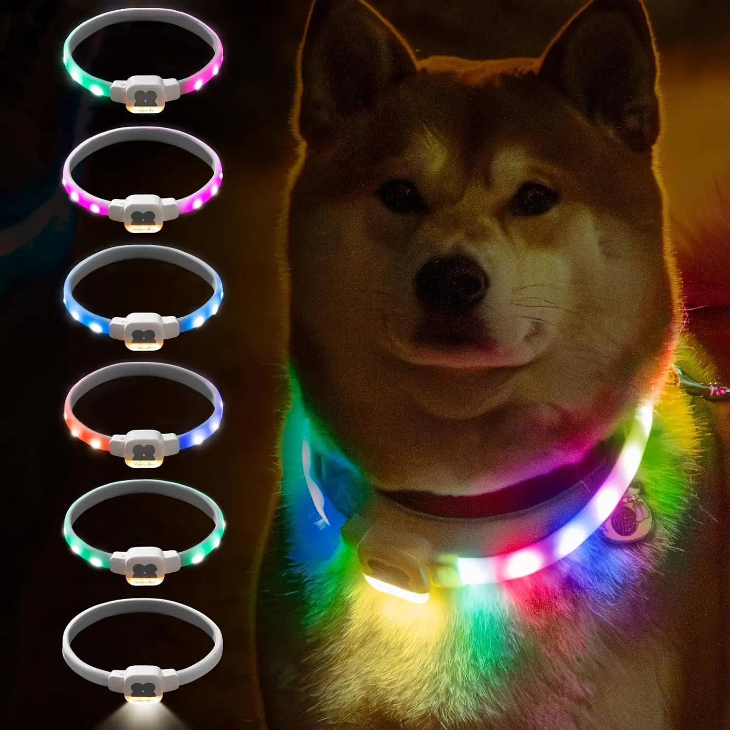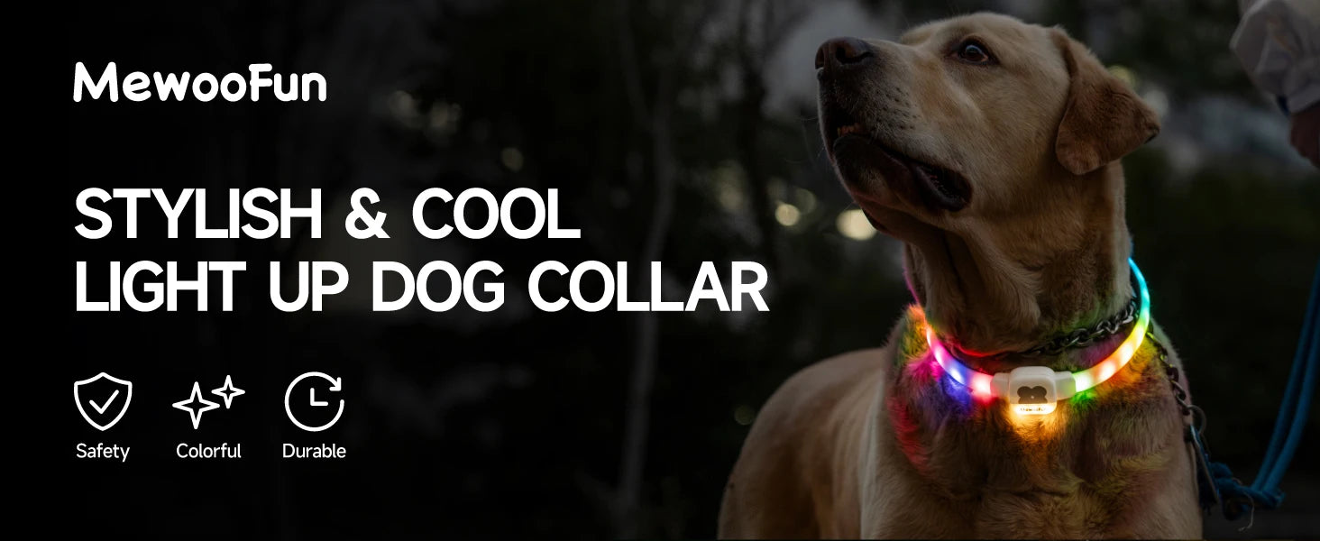 Mewoofun Light Up Dog Collar LED with USB Rechargeable Glow in The Dark Waterproof Dog Necklace with 6 Flashing Modes for Dogs