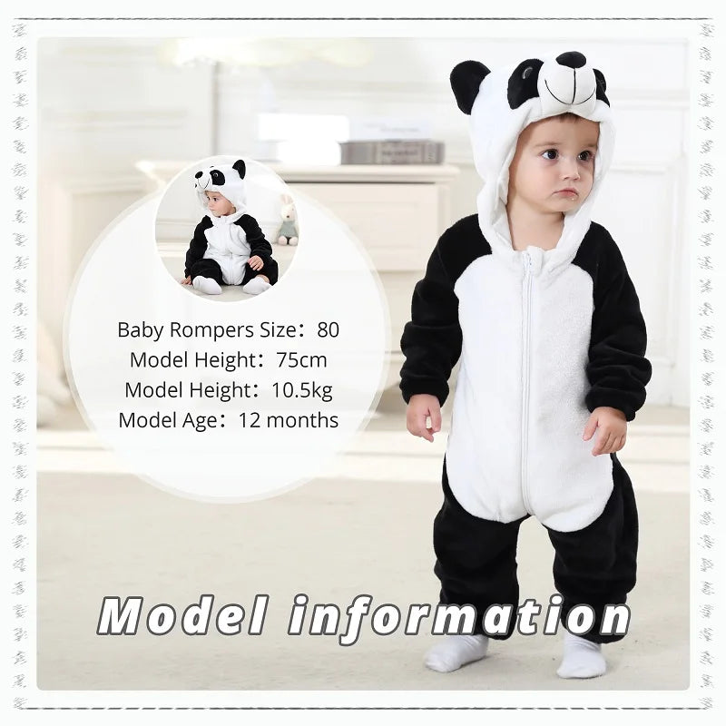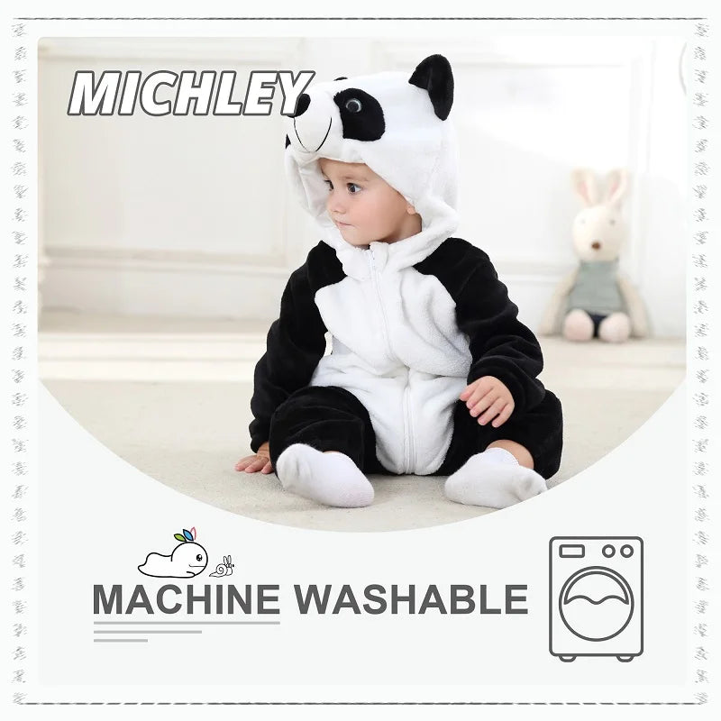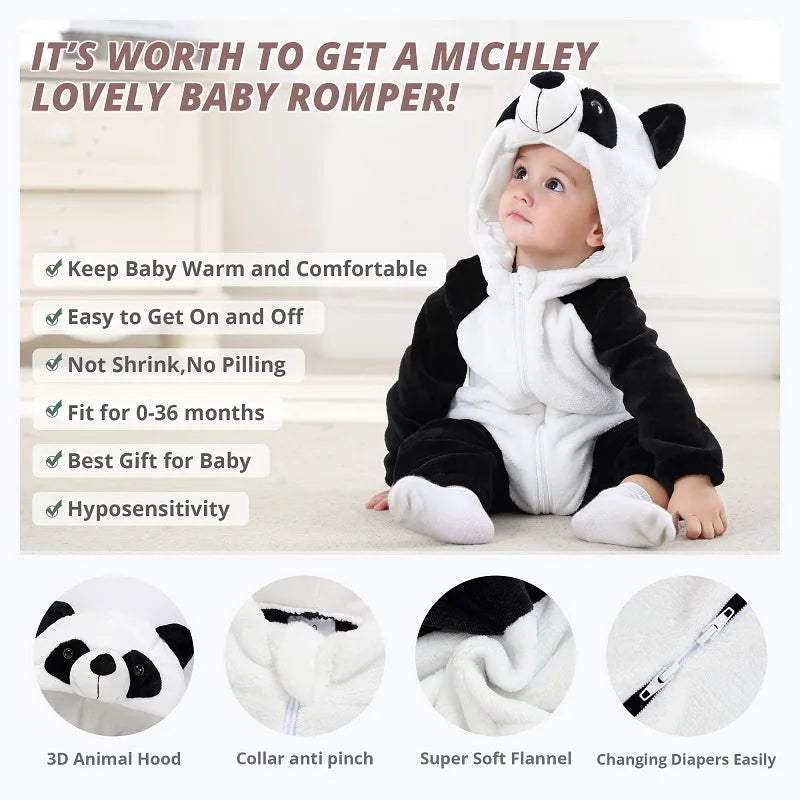 MICHLEY Halloween Panda Flannel Baby Rompers Winter Warm Clothes Costume Hooded Bodysuits Pajamas Overall Jumpsuit For Girl Boy