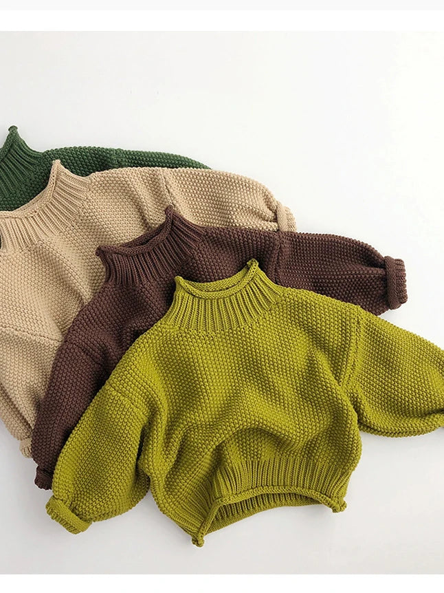 MILANCEL Winter Korean Style Kids Sweater Vintage Boys Knitwear Solid Turtleneck Girls Sweaters Coat