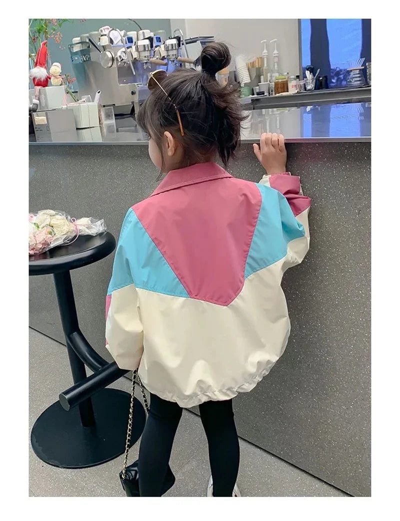 New Colorblocking Jackets Spring Girls Fashion Thin Coats Autumn Children Clothes Big Kids Casual Zipper Outerwear 2-10 Years