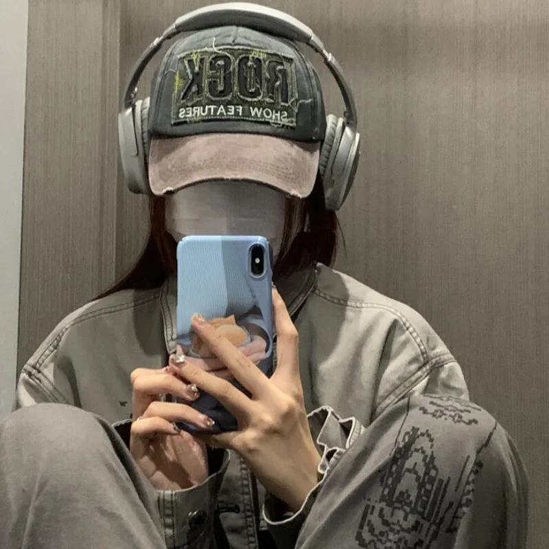 New Men and Women Frayed Old Baseball Cap Washed Cotton Peaked Rock Letter Embroidery Sun Hat Retro