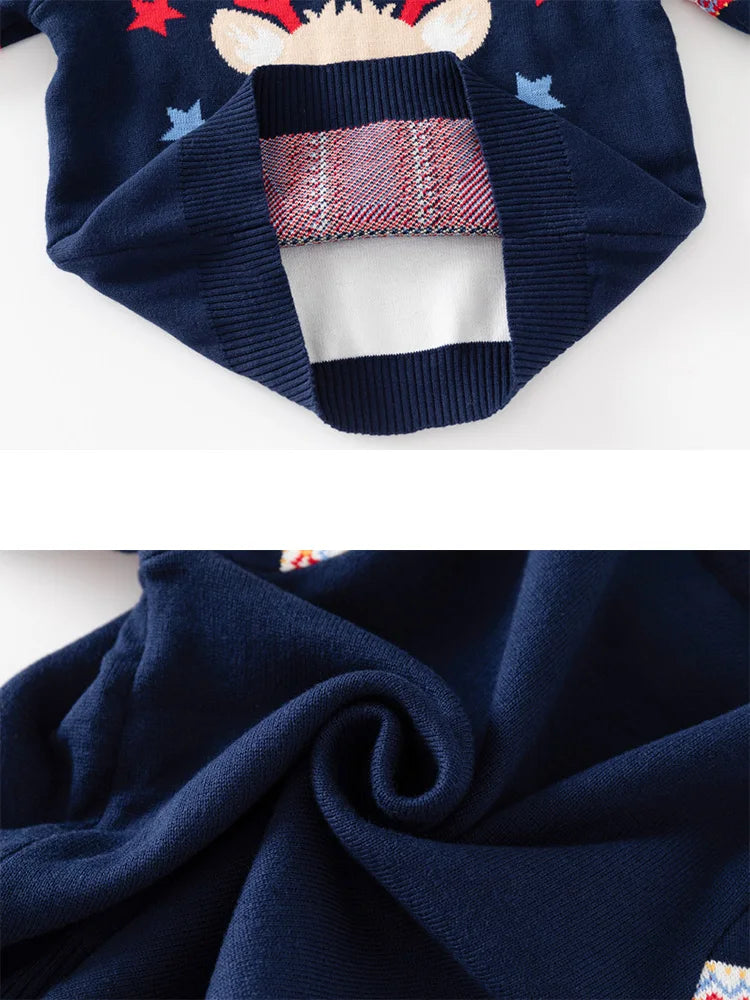 New Year Kid Sweater Long Sleeve Cartoon Print Deer Casual Loose Pullover Knitwear Baby Girl Boy Sweater Christmas Child Clothes
