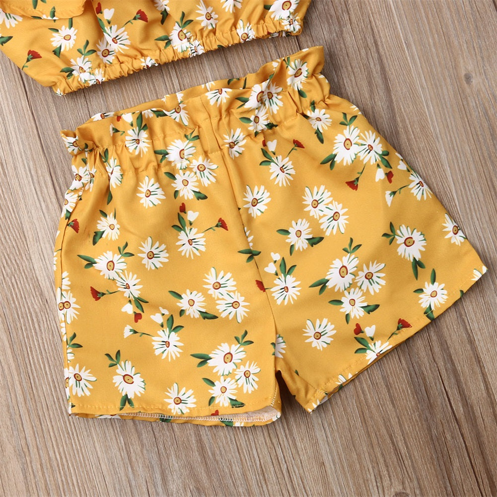 Newest Fashion Summer Toddler Baby Girl Clothes Off Shoulder Ruffle Sling Crop Tops Short Pants 2Pcs Outfits Clothes